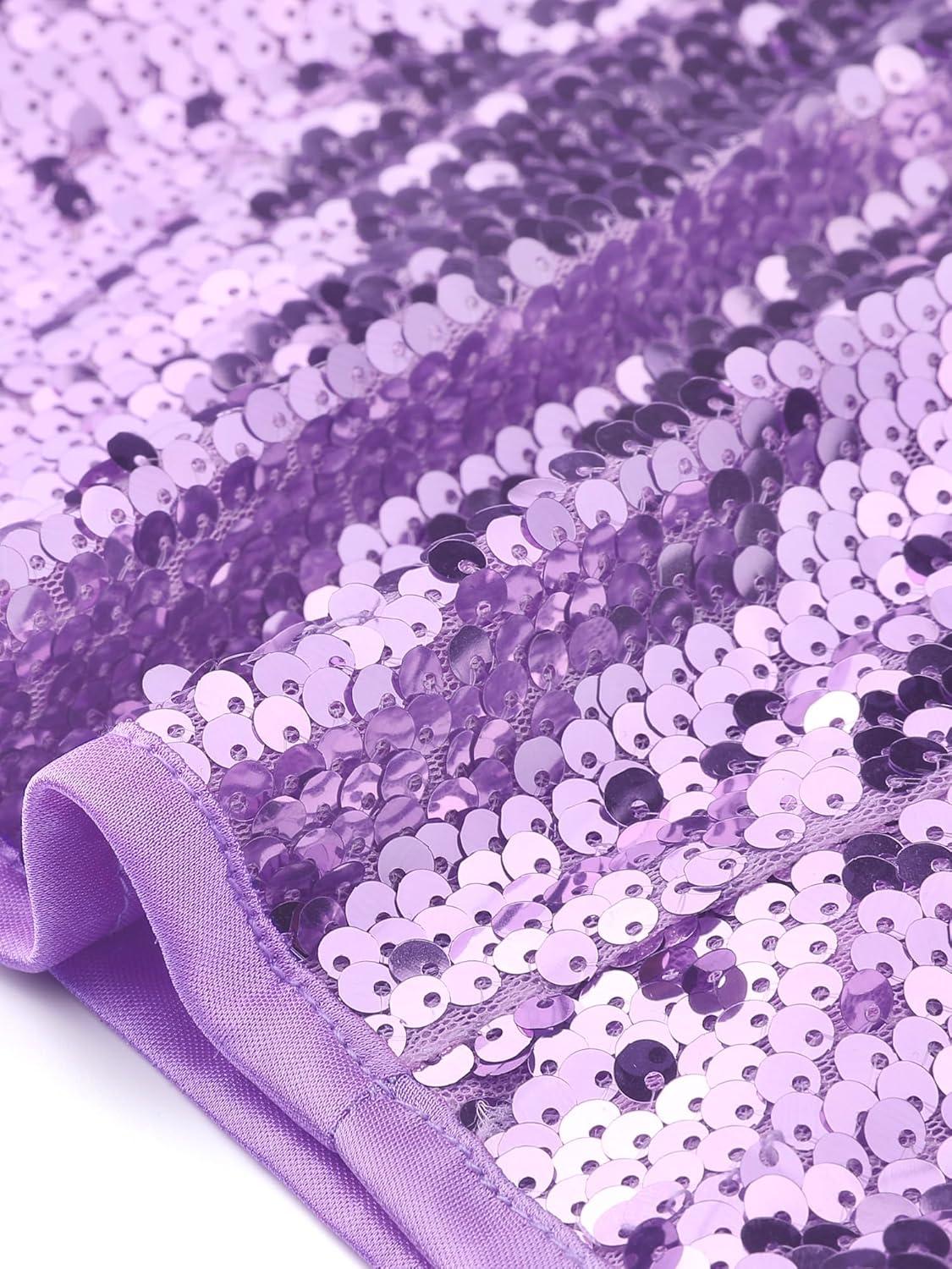 Allegra K Women's Sequin Tops Metallic Sparkle Glitter Sleeveless Camisole Tank Top Party Club Crop Tops(Light Purple)