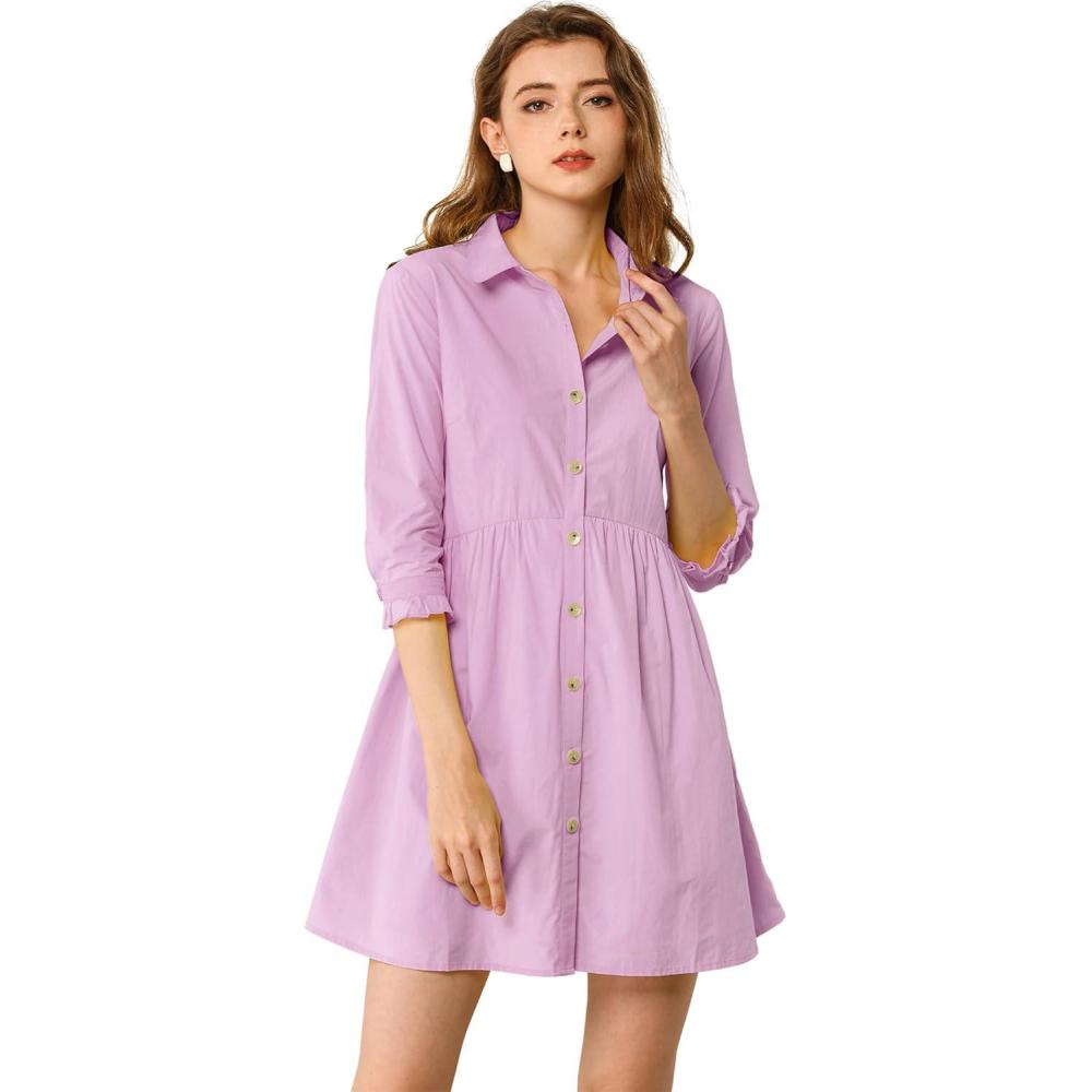 imageAllegra K Womens Shirt Dress Button Down 34 Sleeve School Work Mini Casual ShirtdressesPink Purple