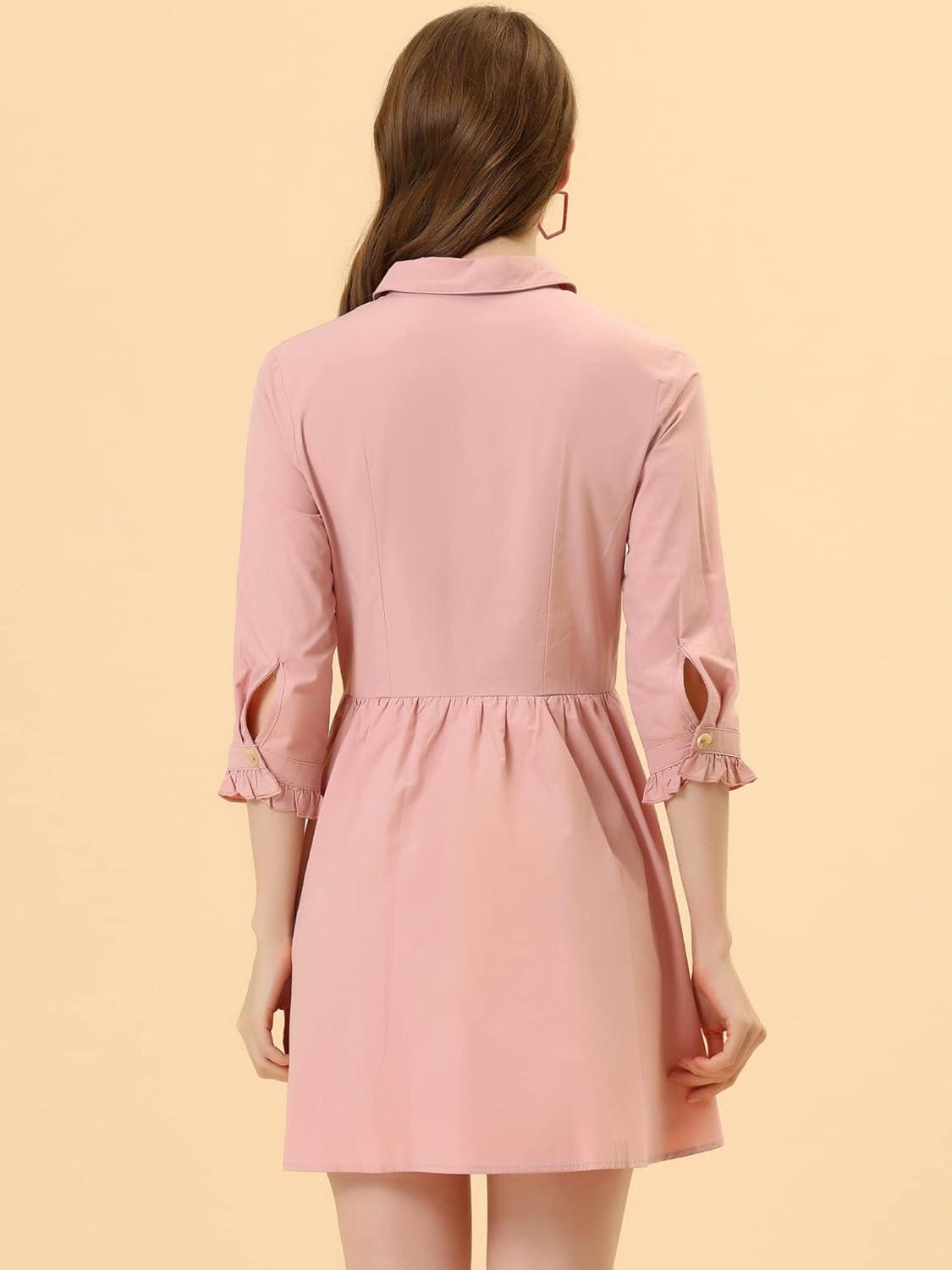 imageAllegra K Womens Shirt Dress Button Down 34 Sleeve School Work Mini Casual ShirtdressesPink
