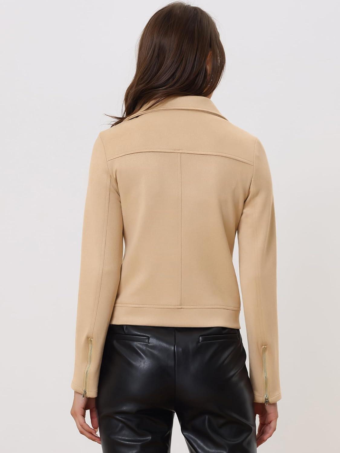Allegra K Women’s Short Soft Zip Up Faux Suede Biker Moto Jacket(Pale Khaki)
