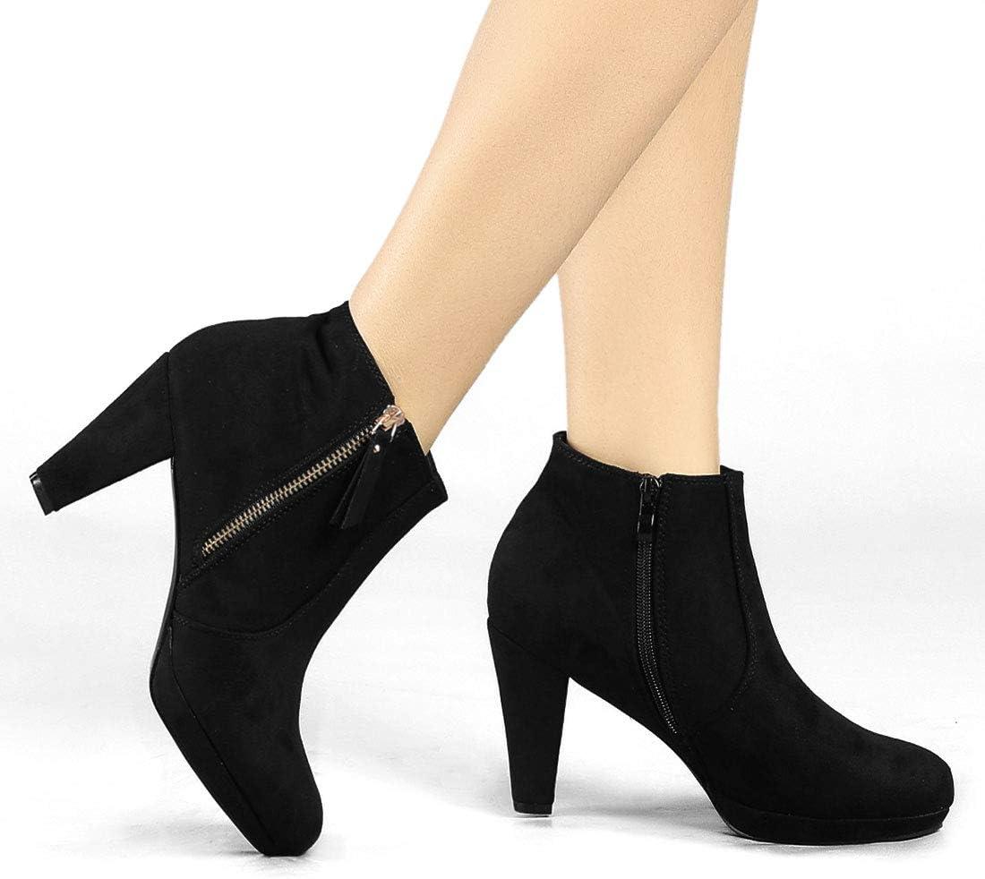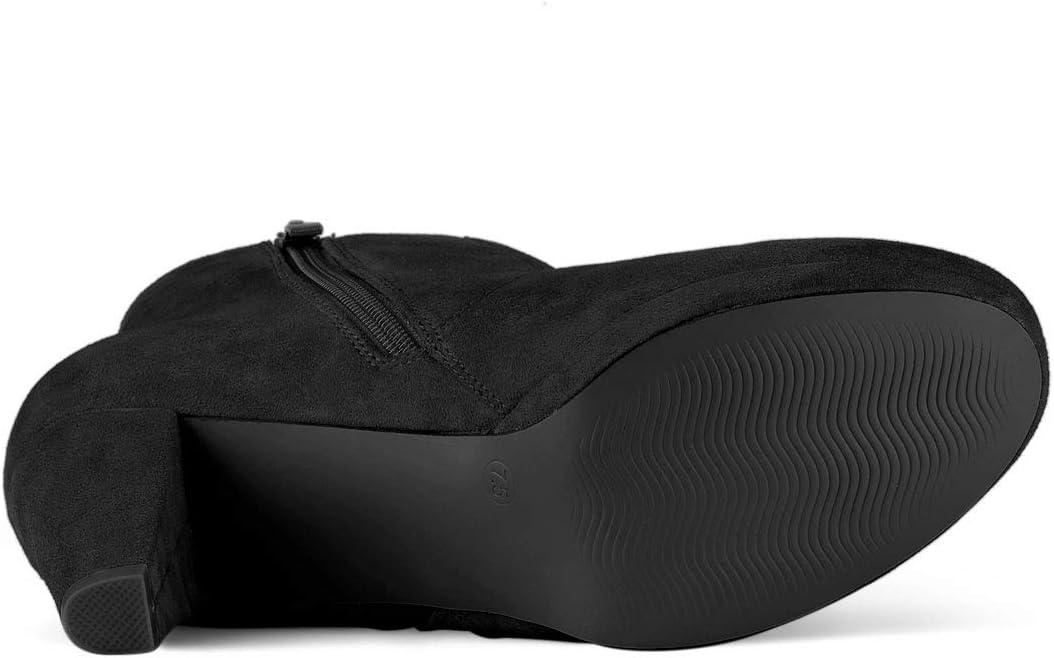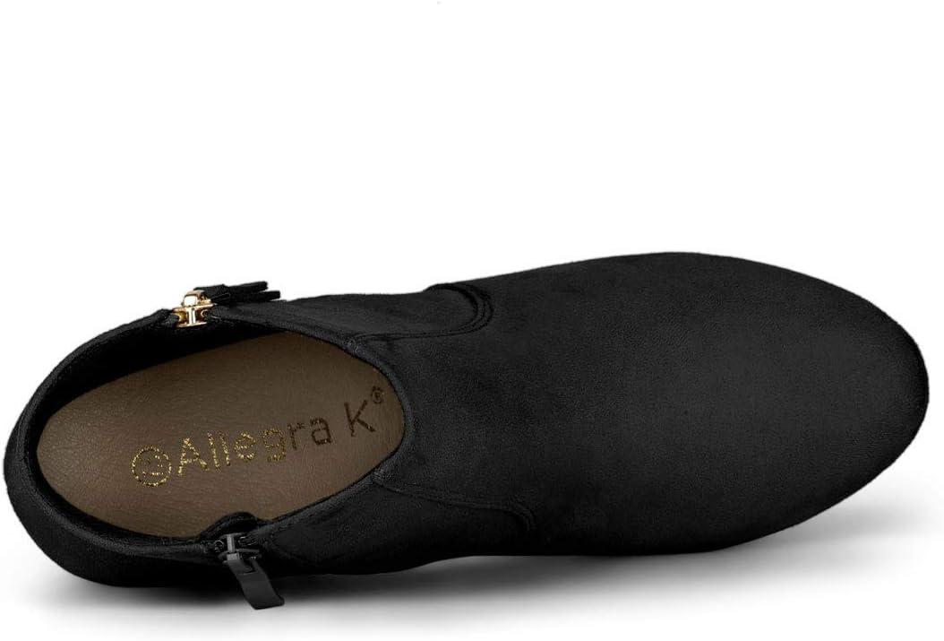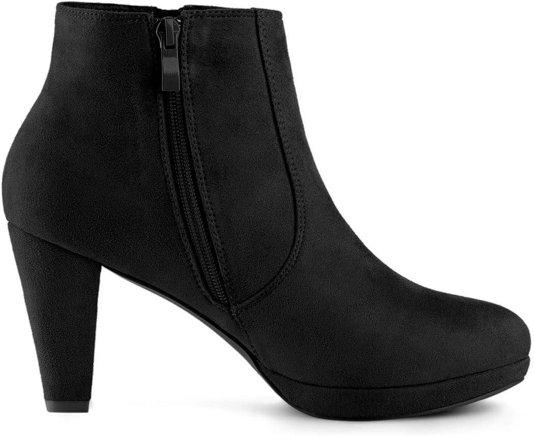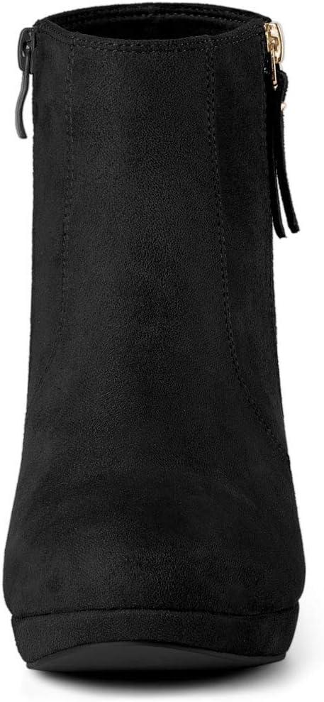 Allegra K Women's Side Zip Low Platform Chunky Heel Ankle Booties(Black)