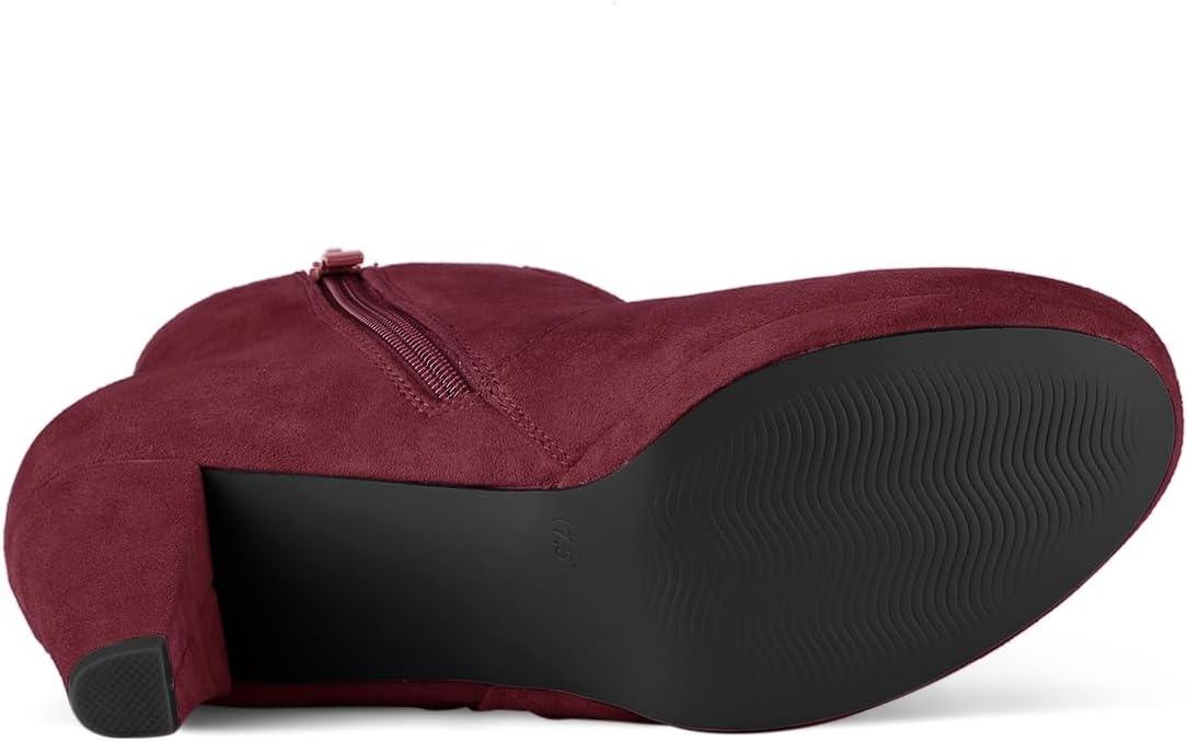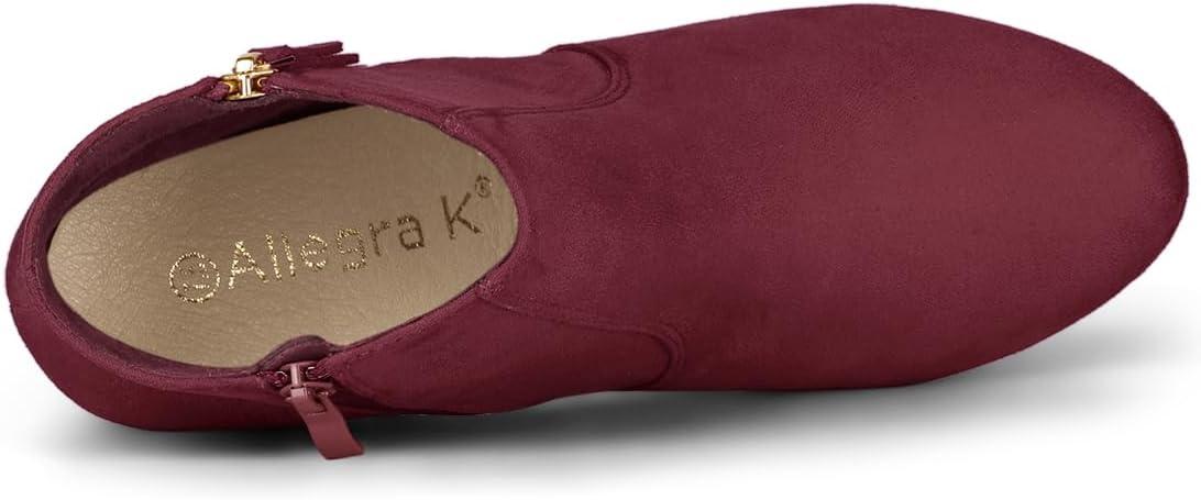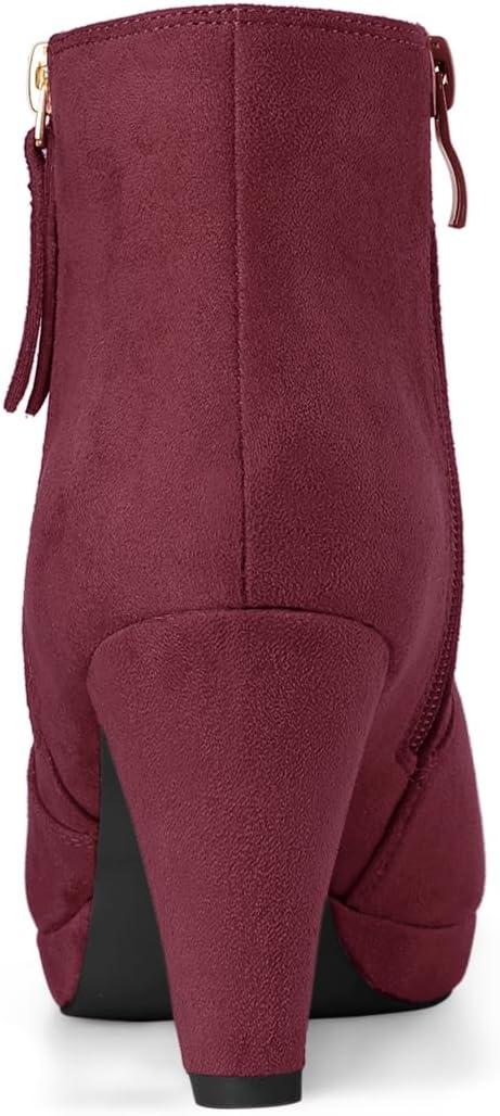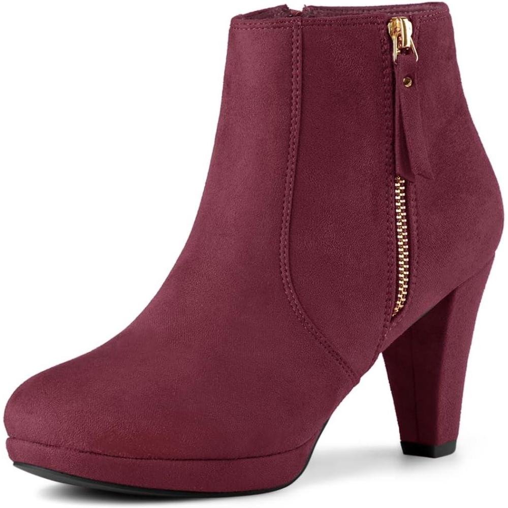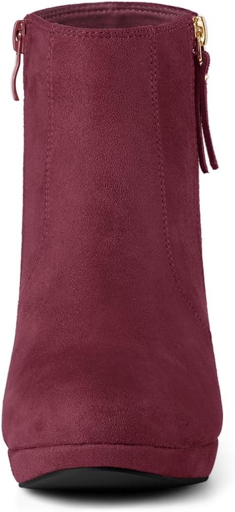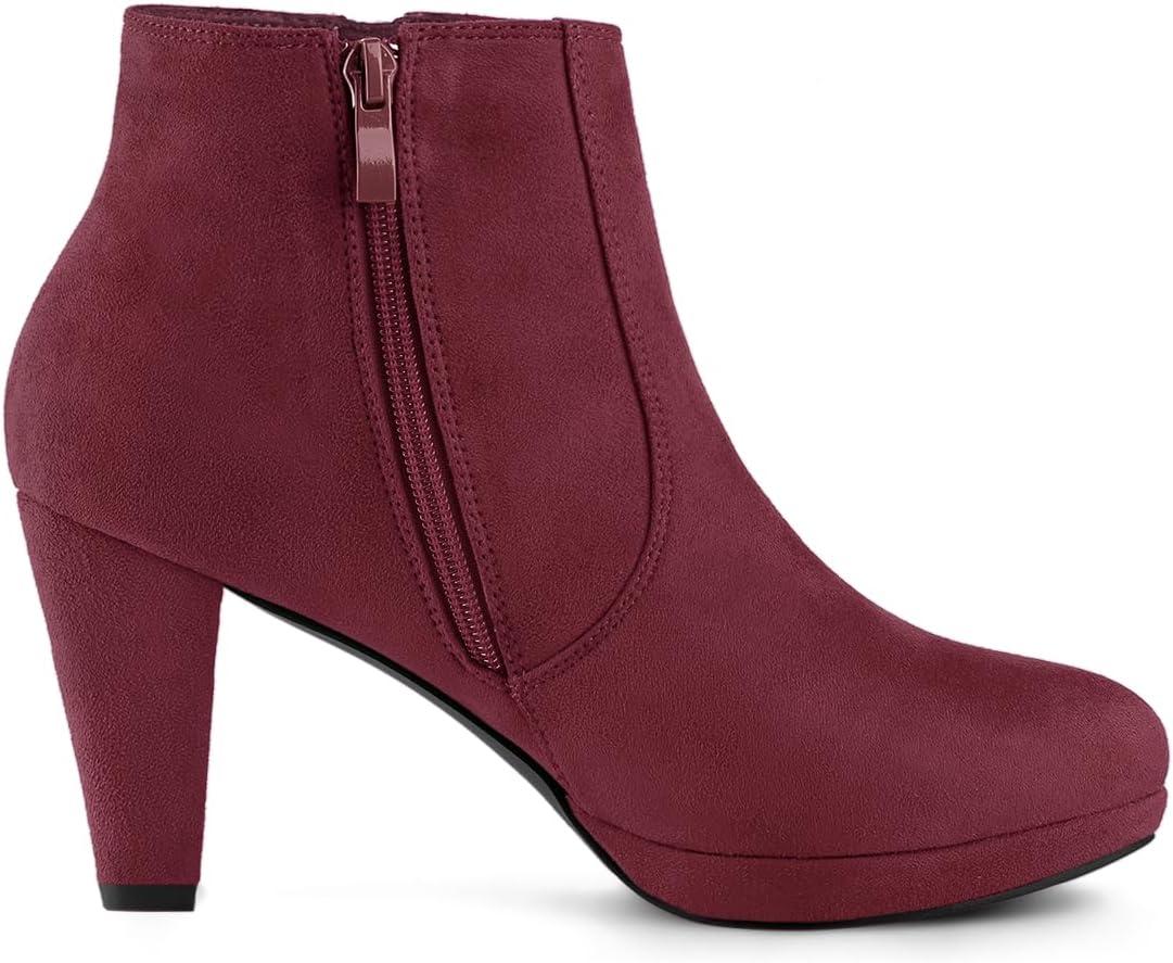 Allegra K Women's Side Zip Low Platform Chunky Heel Ankle Booties(Burgundy)