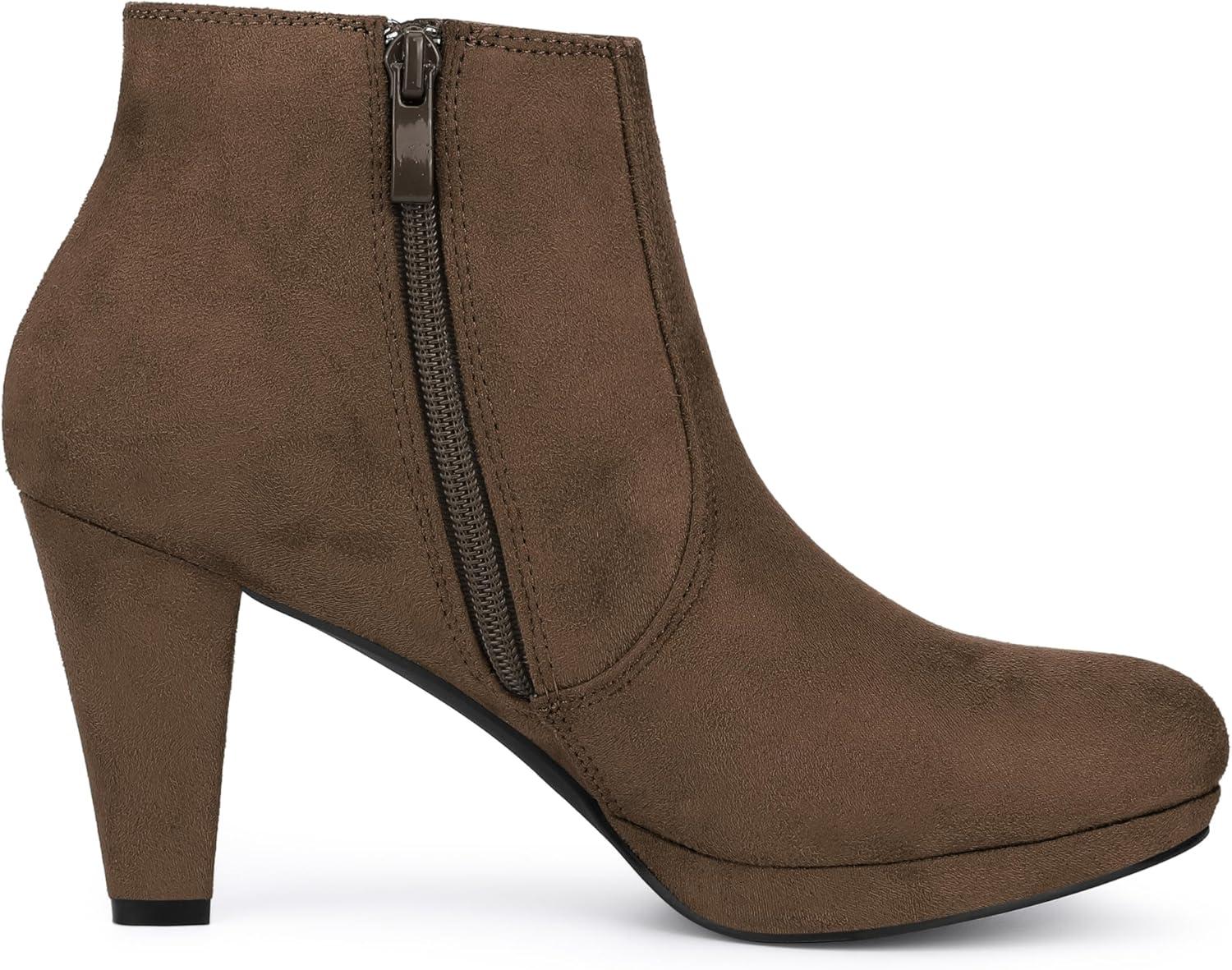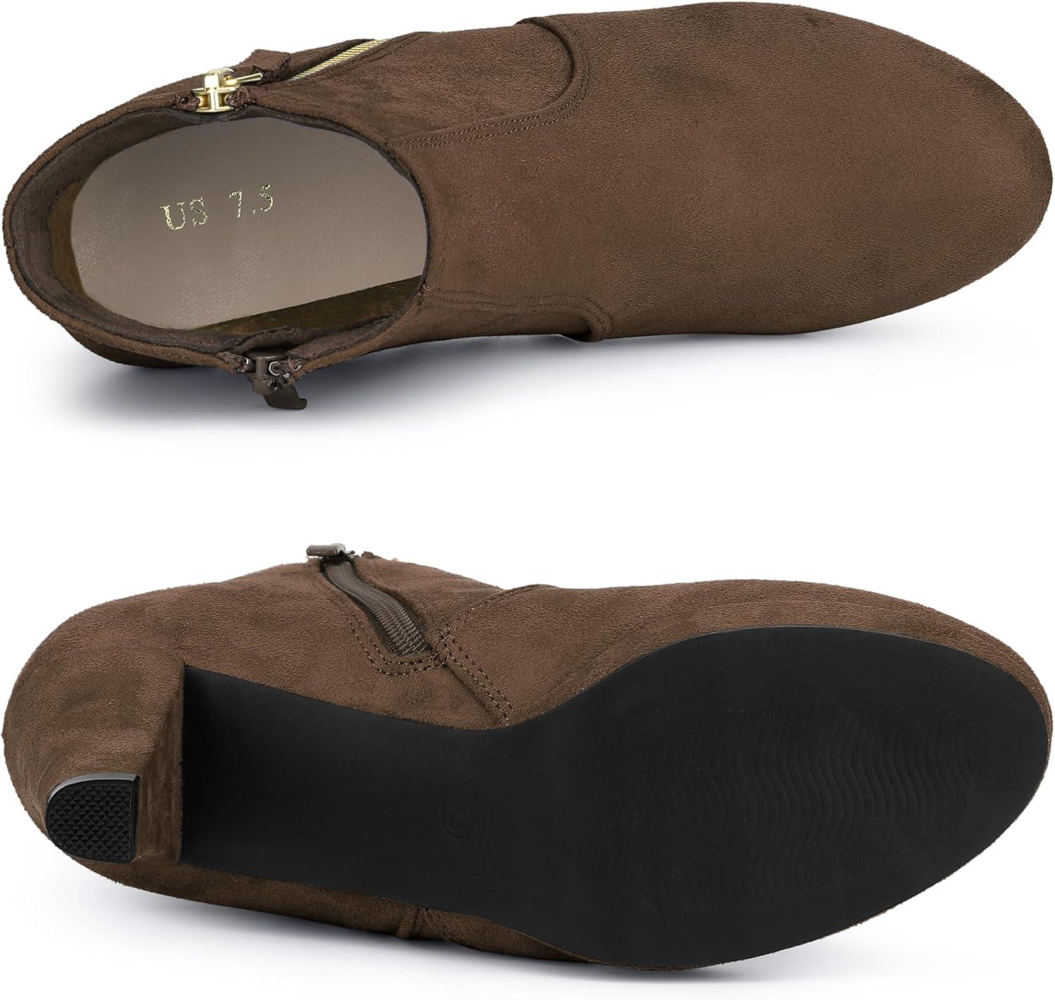 Allegra K Women’s Side Zip Low Platform Chunky Heel Ankle Booties(Dark Brown)