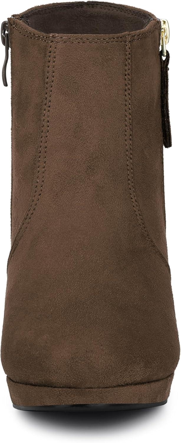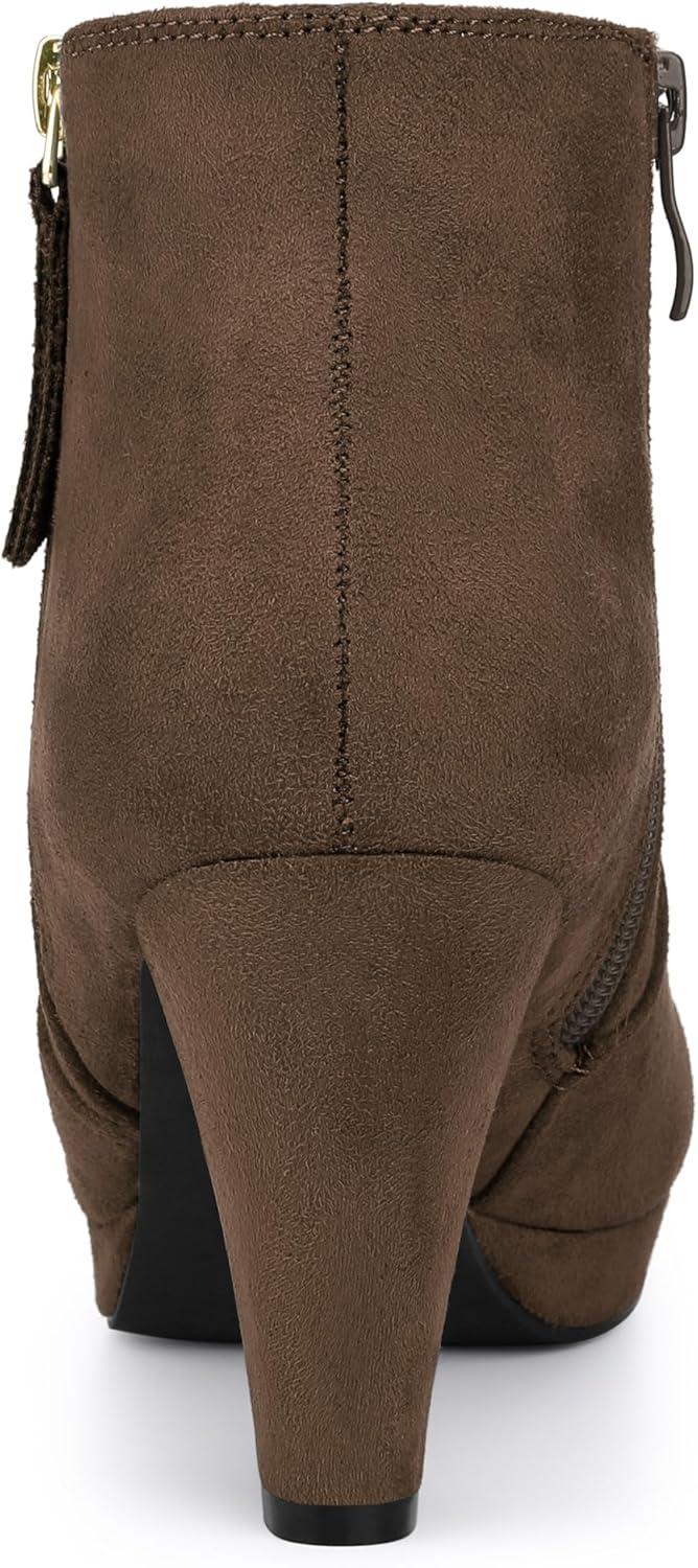Allegra K Women's Side Zip Low Platform Chunky Heel Ankle Booties(Dark Brown)