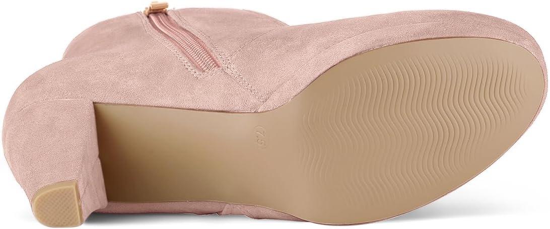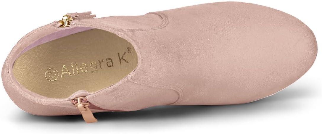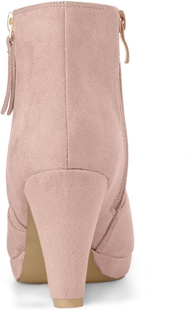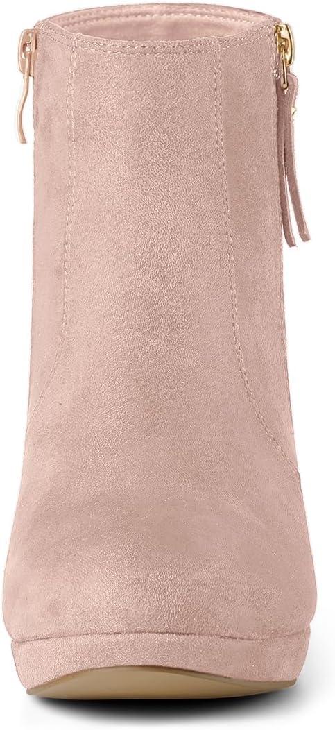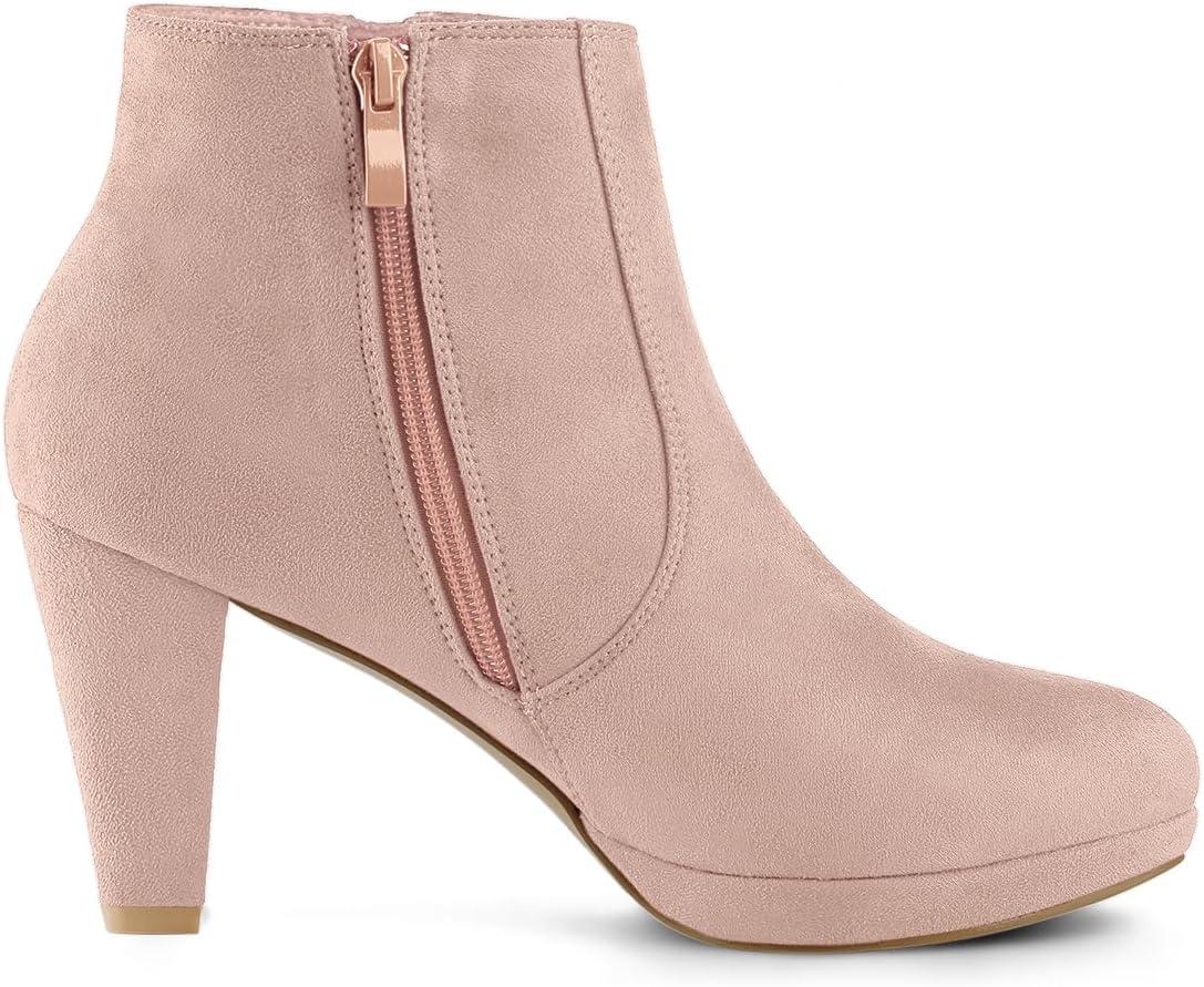 Allegra K Women's Side Zip Low Platform Chunky Heel Ankle Booties(Dust Pink)