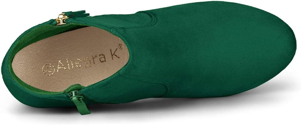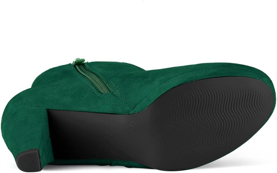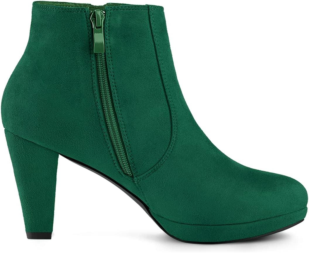 Allegra K Women’s Side Zip Low Platform Chunky Heel Ankle Booties(Emerald Green)