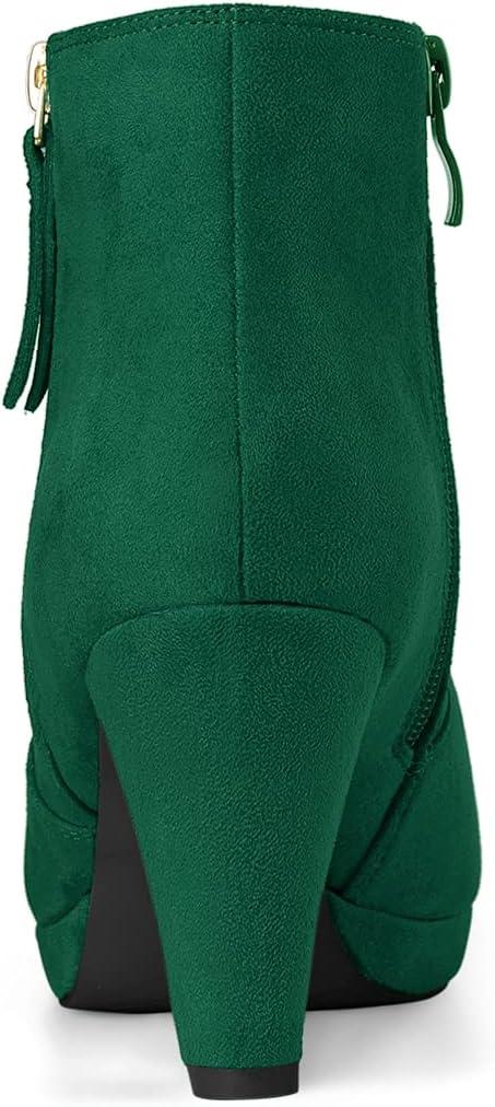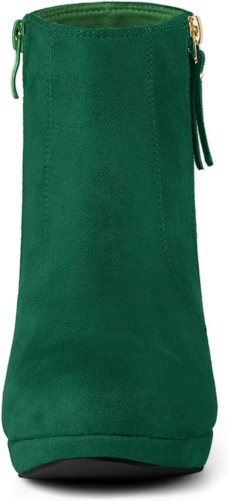 Allegra K Women's Side Zip Low Platform Chunky Heel Ankle Booties(Emerald Green)