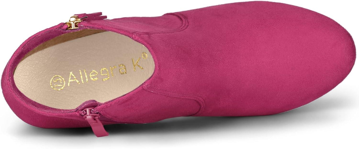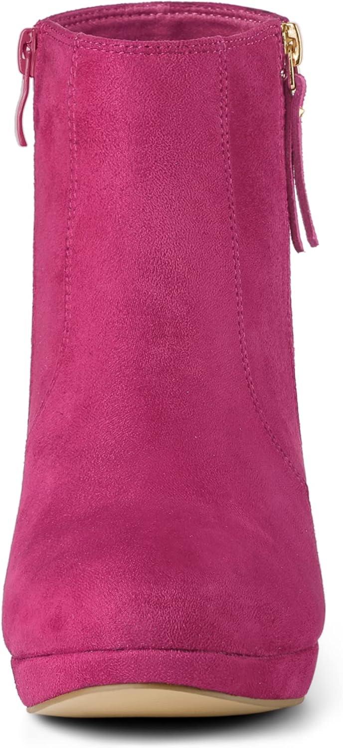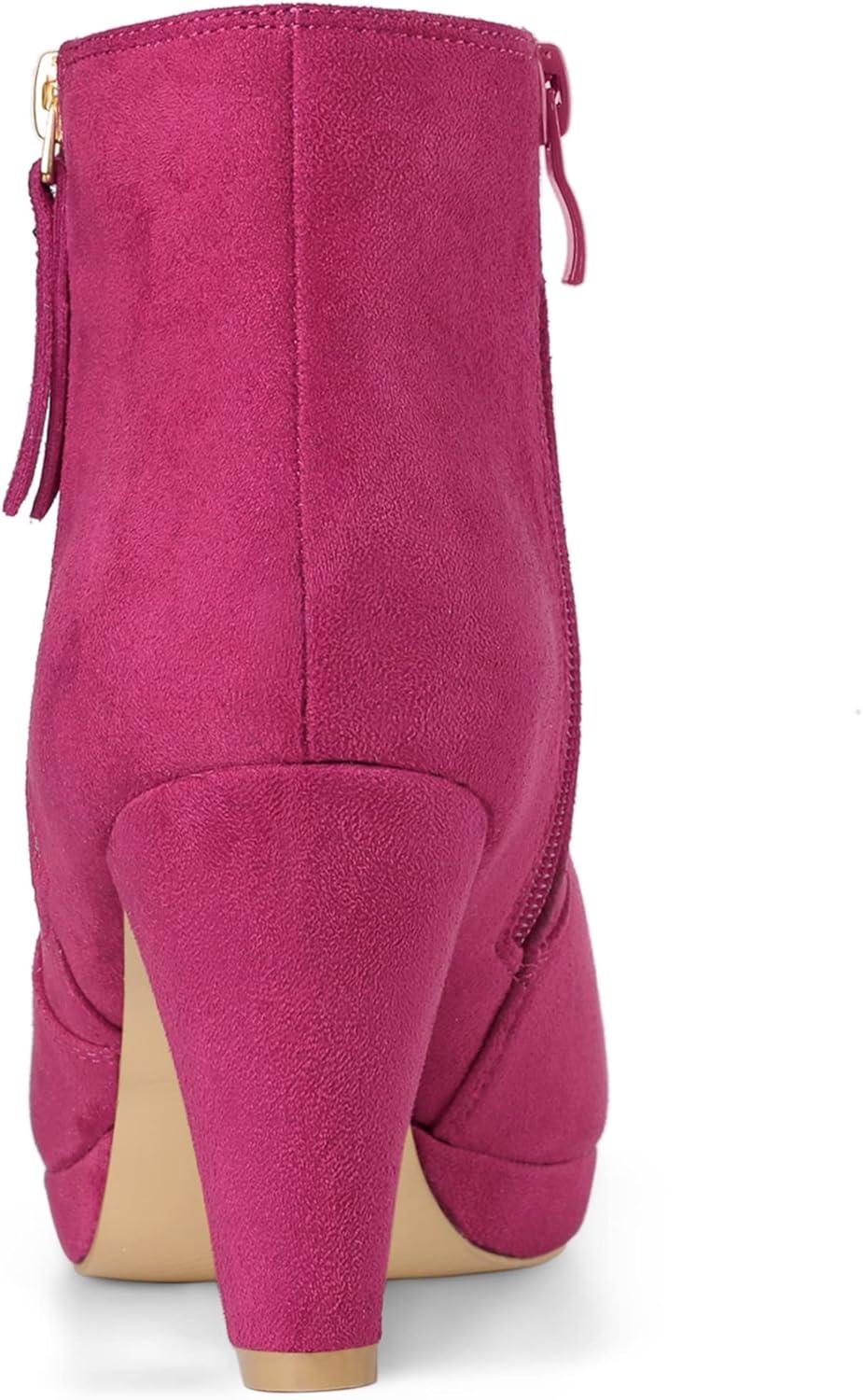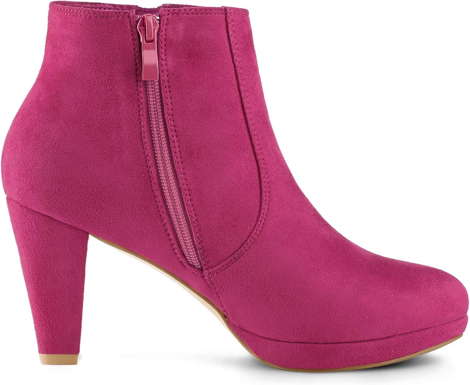 Allegra K Women's Side Zip Low Platform Chunky Heel Ankle Booties(Hot Pink)