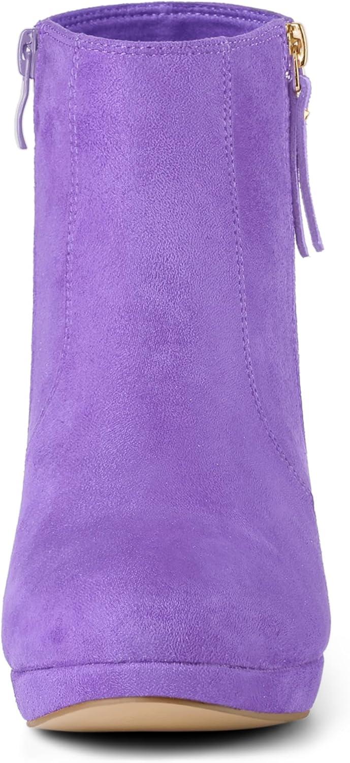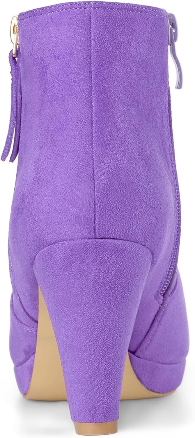 Allegra K Women's Side Zip Low Platform Chunky Heel Ankle Booties(Light Purple)