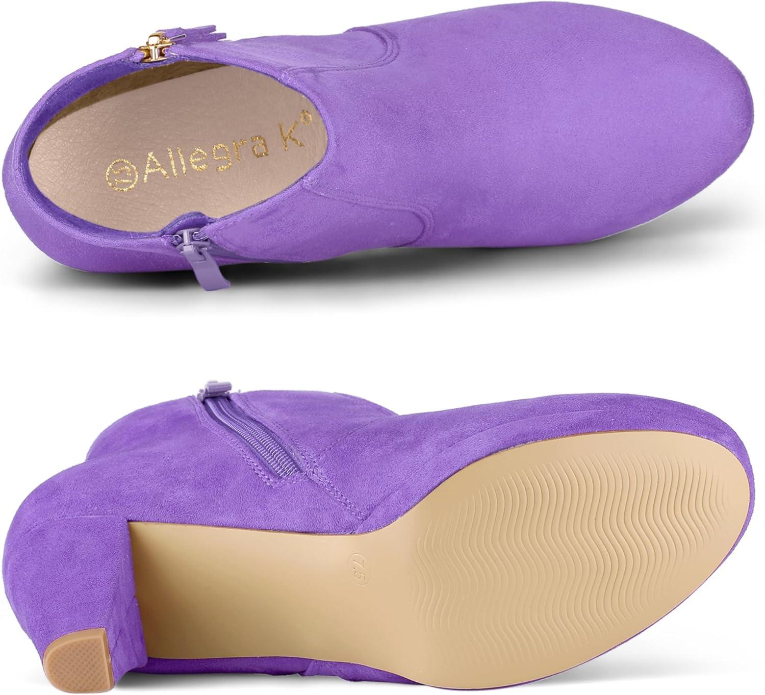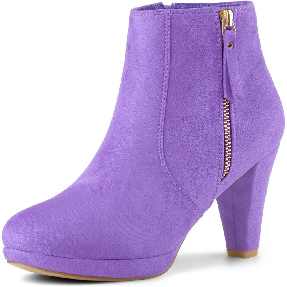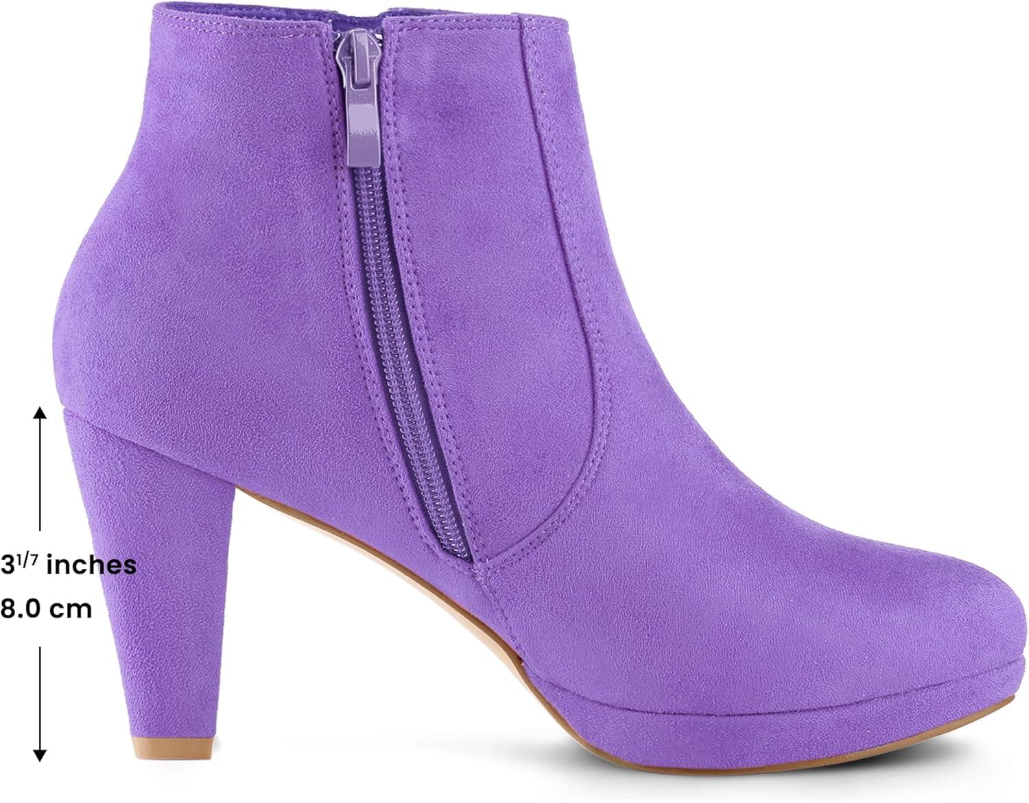 Allegra K Women’s Side Zip Low Platform Chunky Heel Ankle Booties(Light Purple)