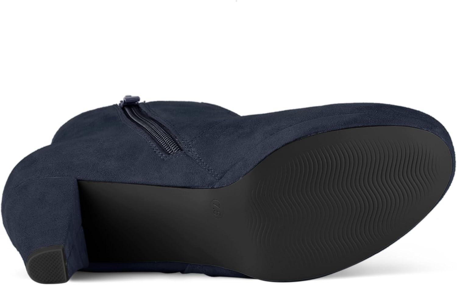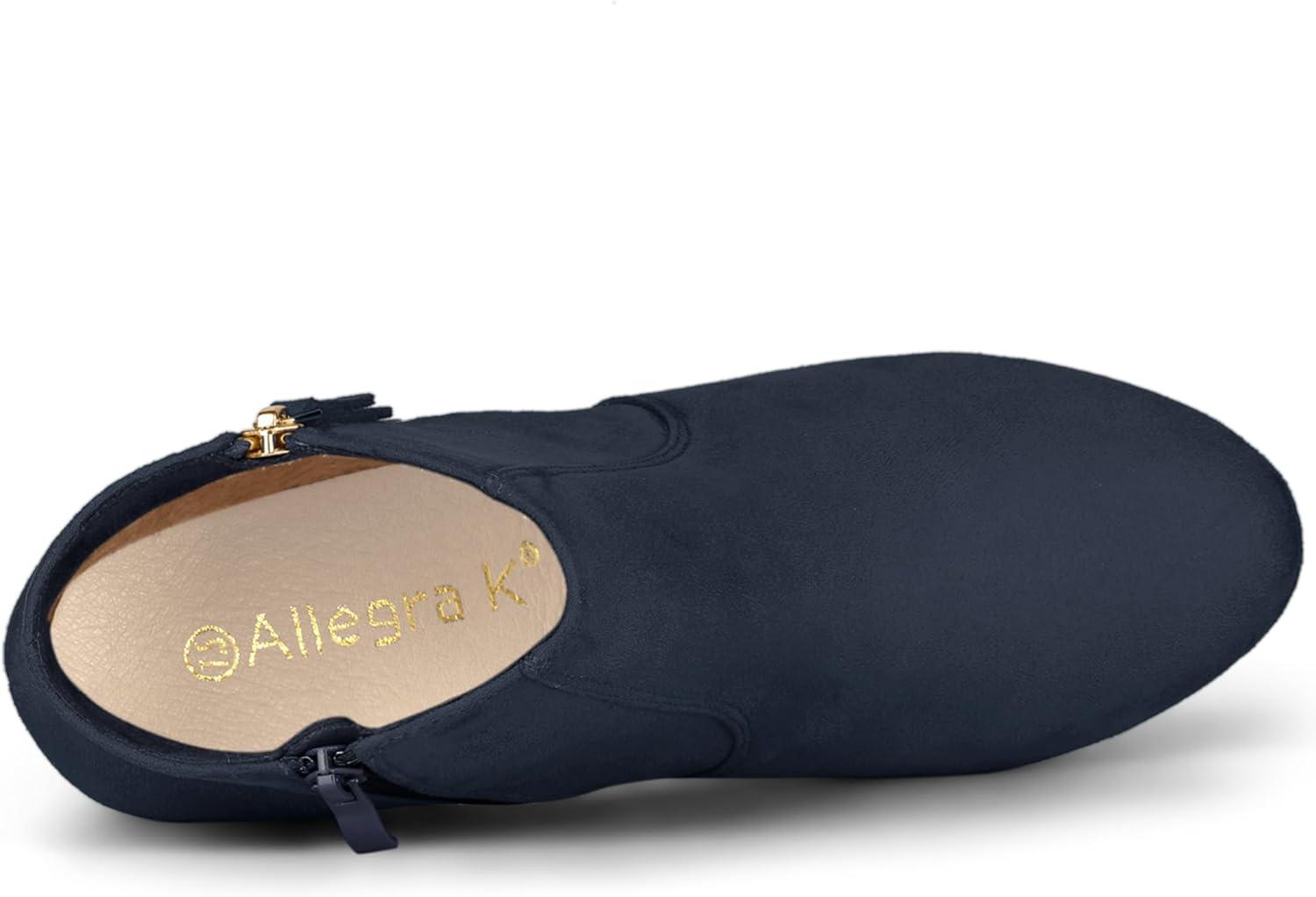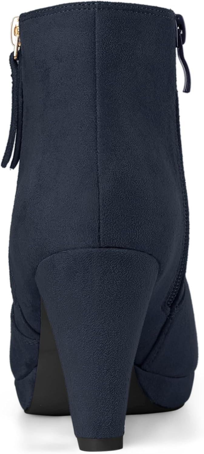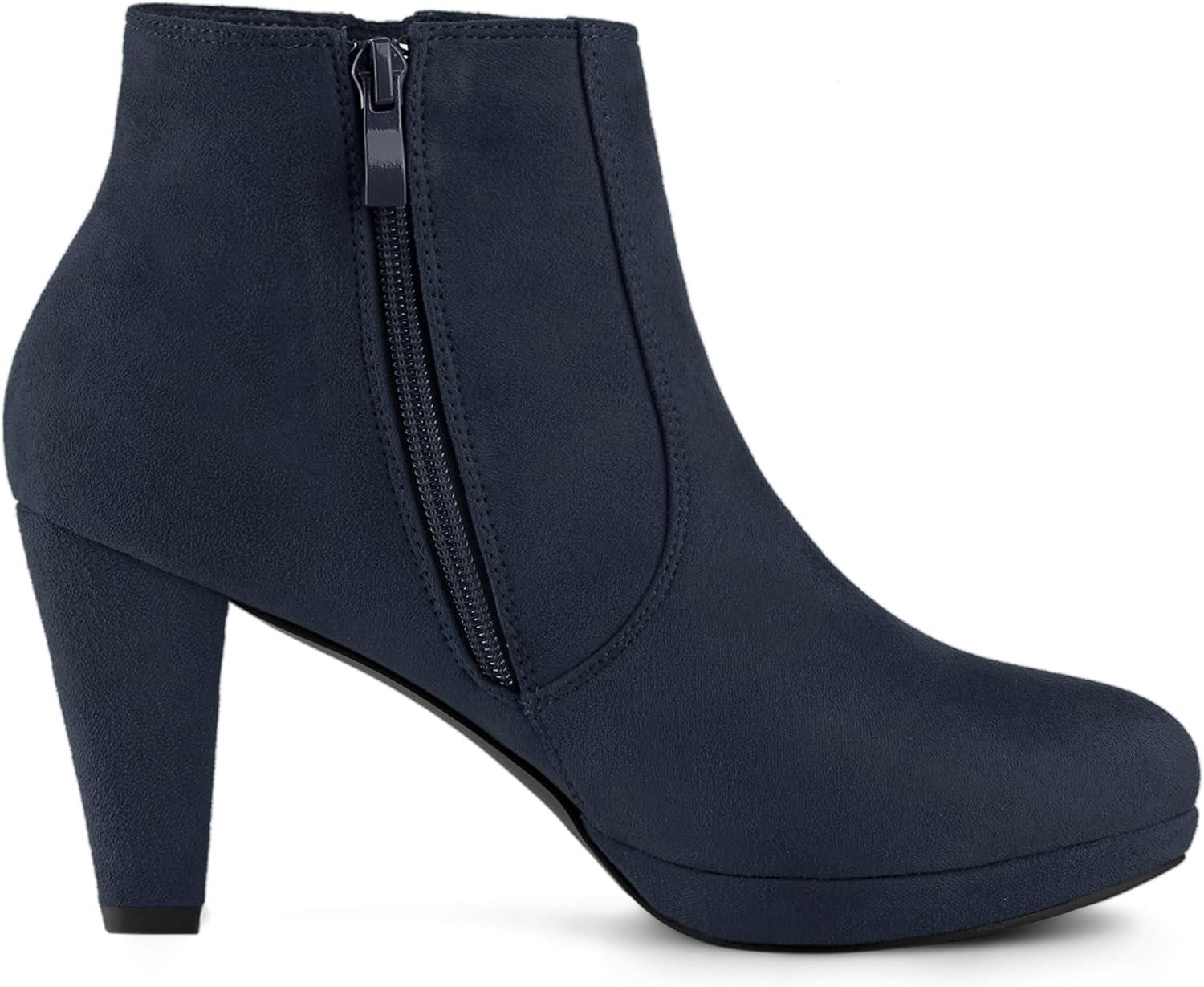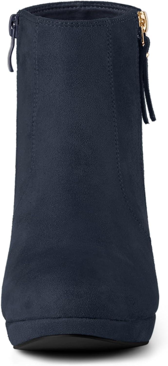 Allegra K Women's Side Zip Low Platform Chunky Heel Ankle Booties(Navy Blue)
