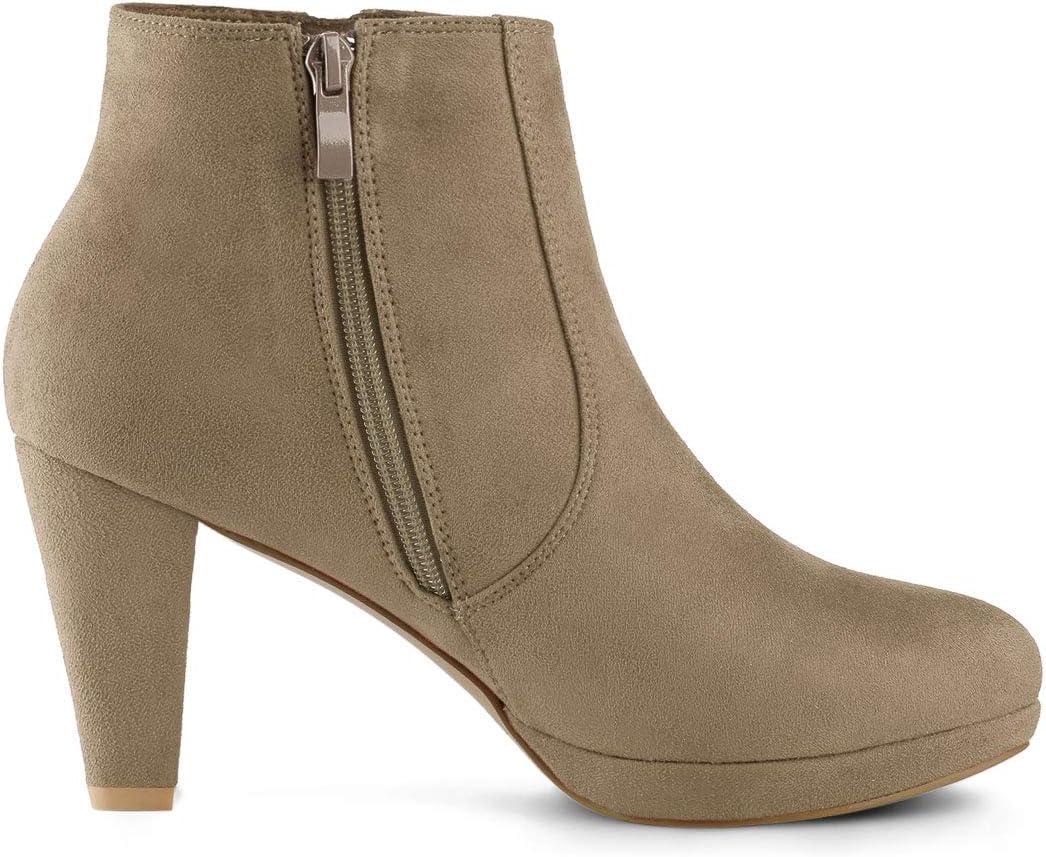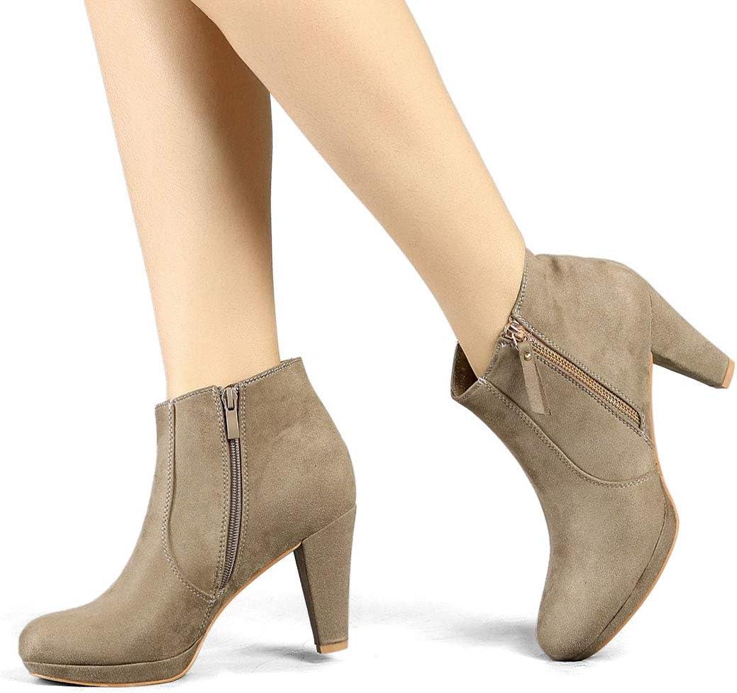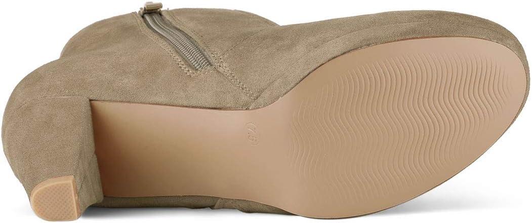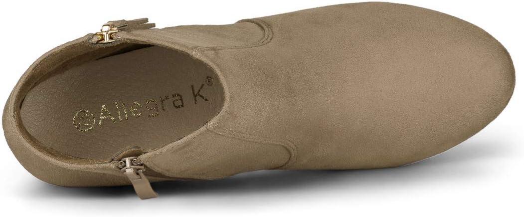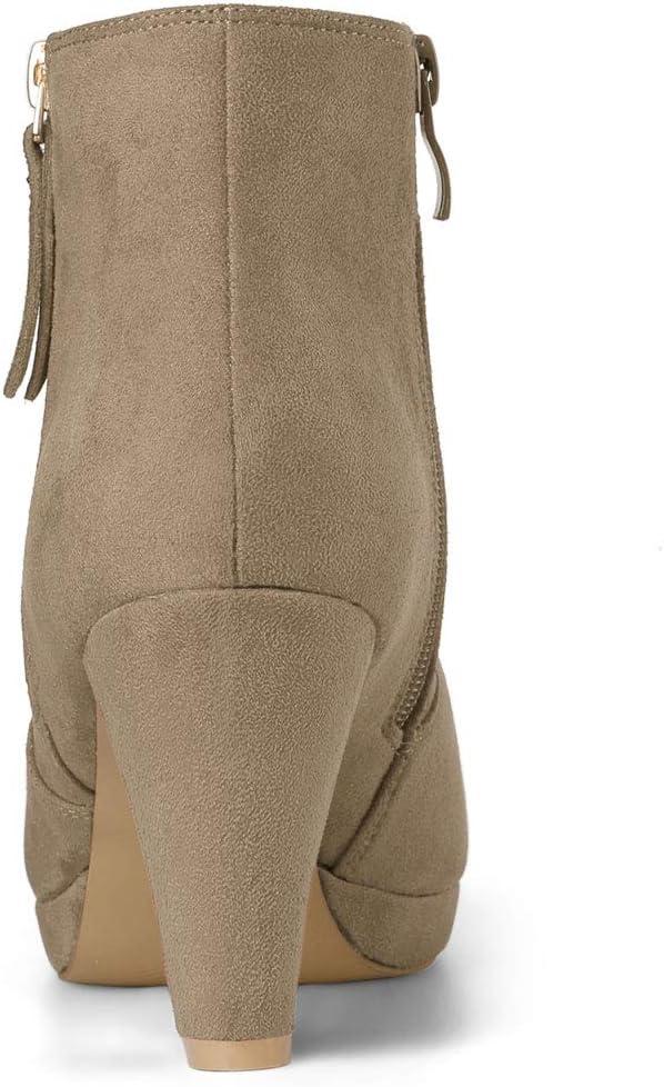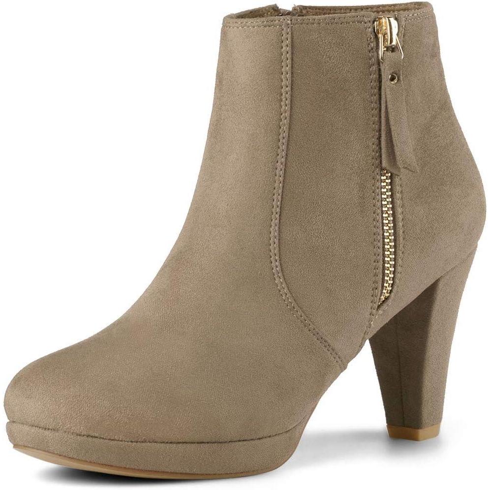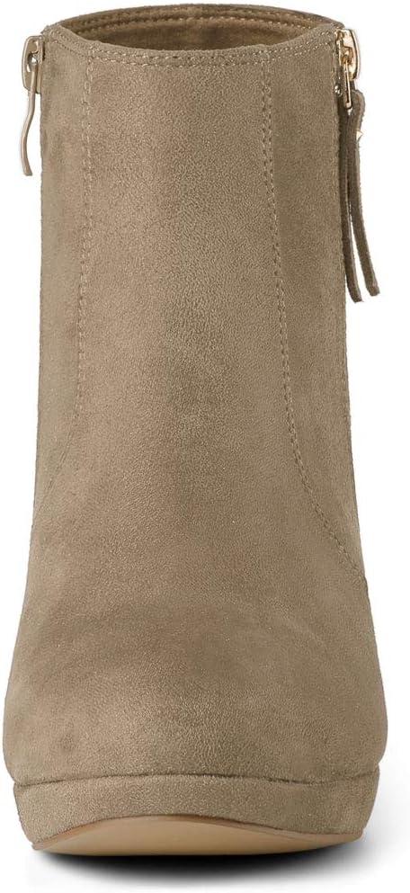 Allegra K Women's Side Zip Low Platform Chunky Heel Ankle Booties(Nude)