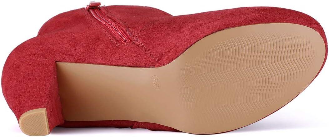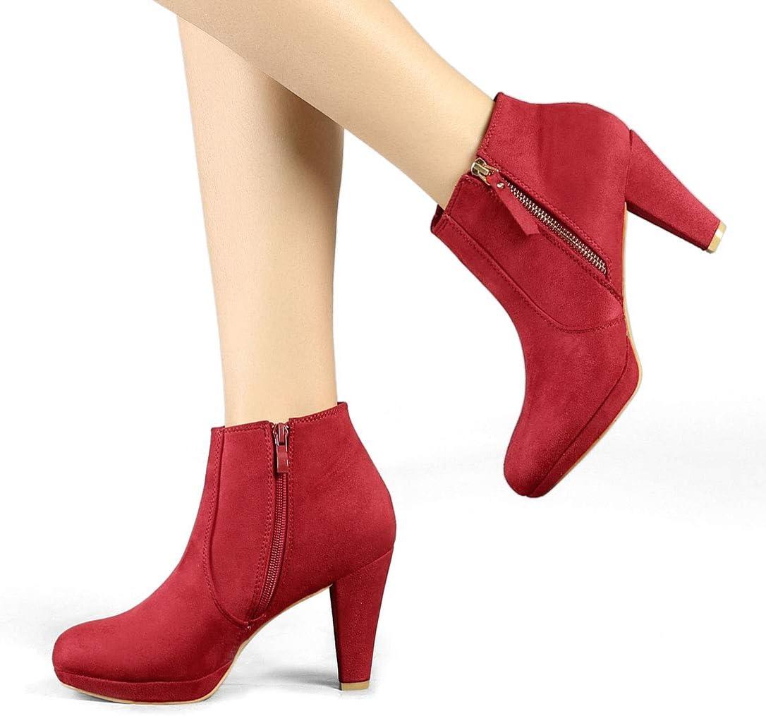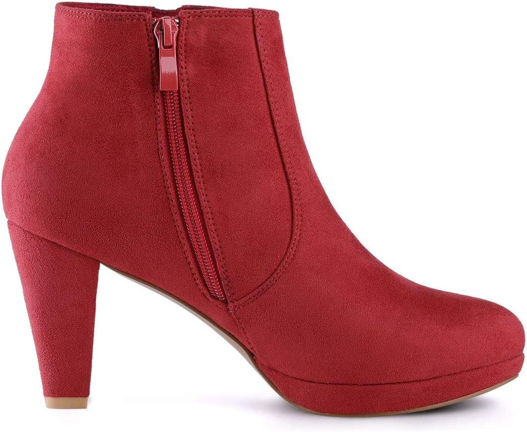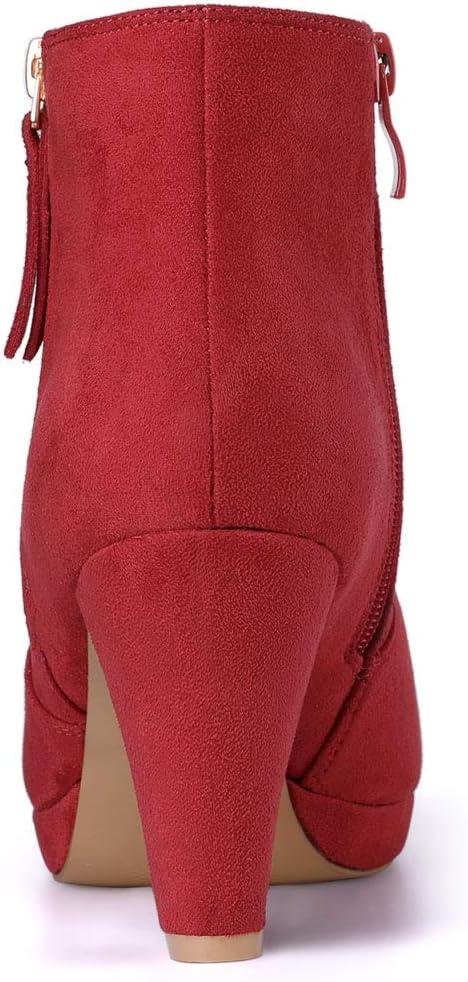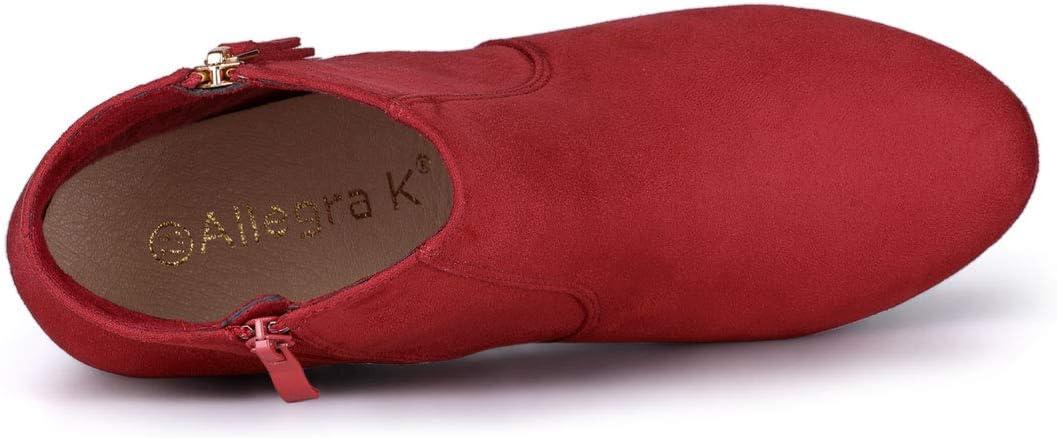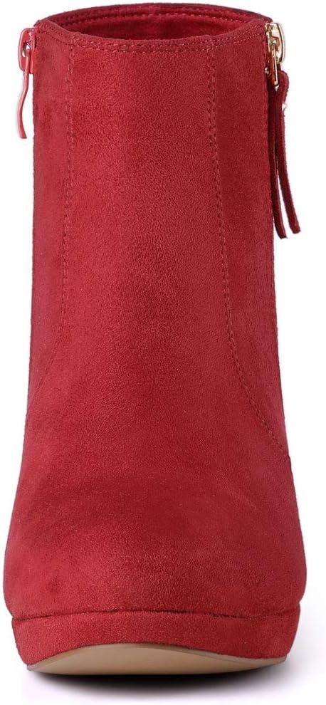 Allegra K Women’s Side Zip Low Platform Chunky Heel Ankle Booties(Red)