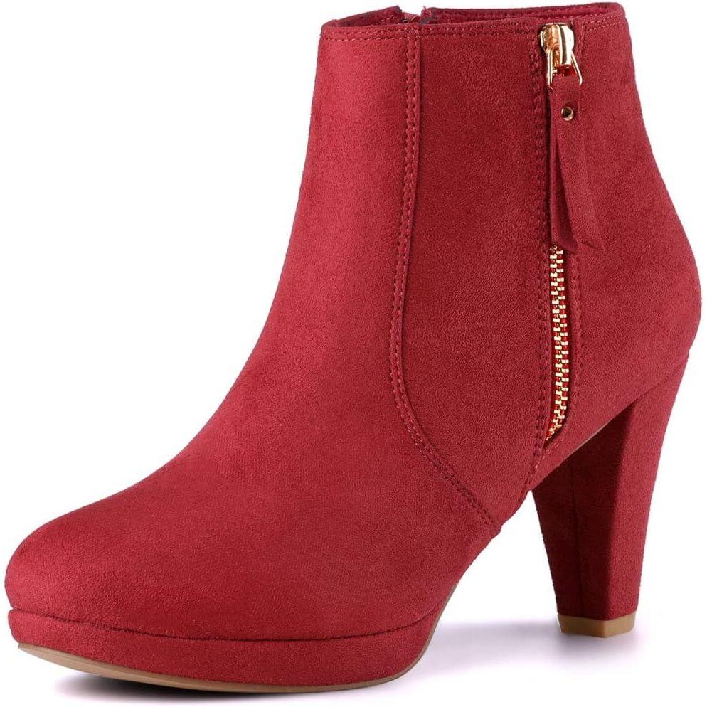 Allegra K Women's Side Zip Low Platform Chunky Heel Ankle Booties(Red)