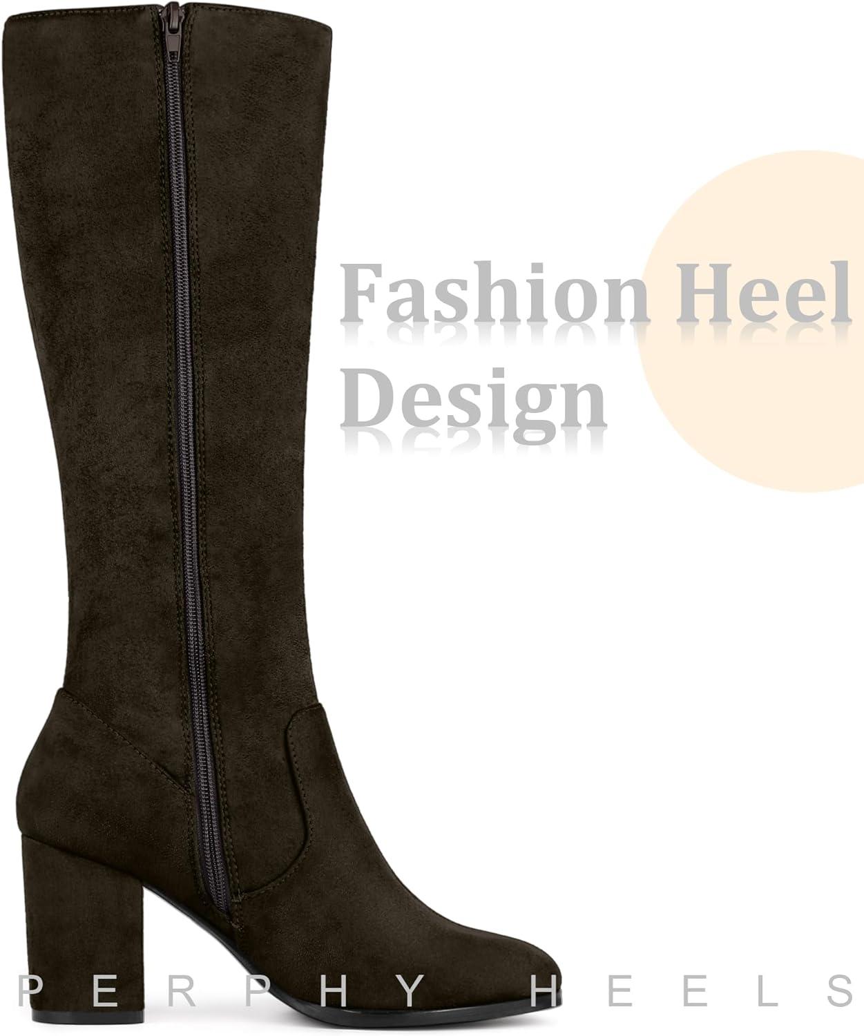 Allegra K Women’s Side Zipper Chunky Heel Knee High Boots(Dark Coffee)