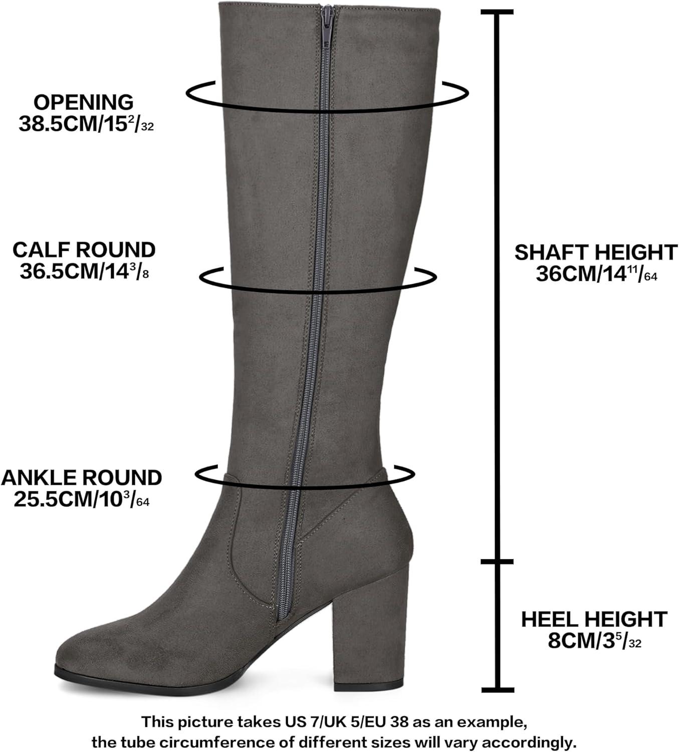 Allegra K Women’s Side Zipper Chunky Heel Knee High Boots(Grey)