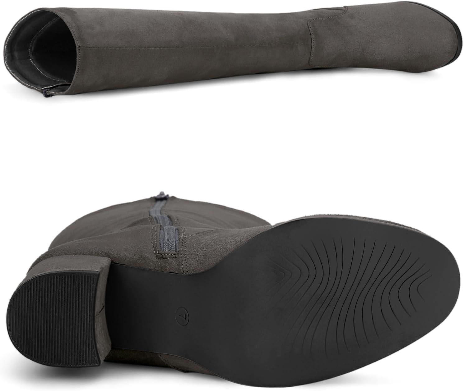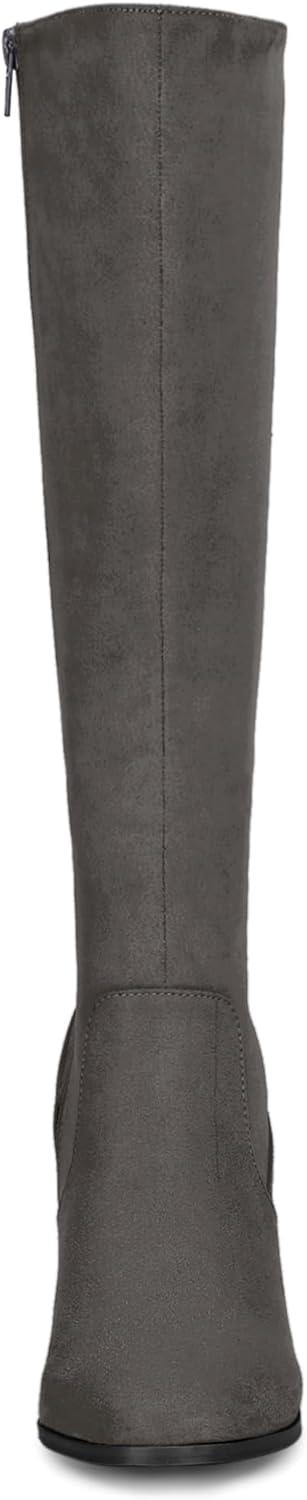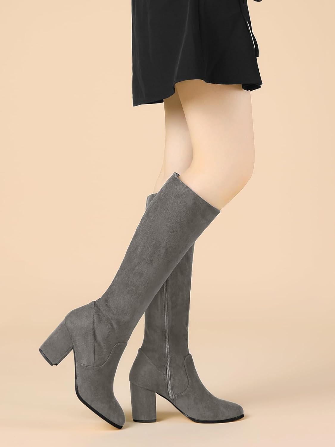 Allegra K Women's Side Zipper Chunky Heel Knee High Boots(Grey)