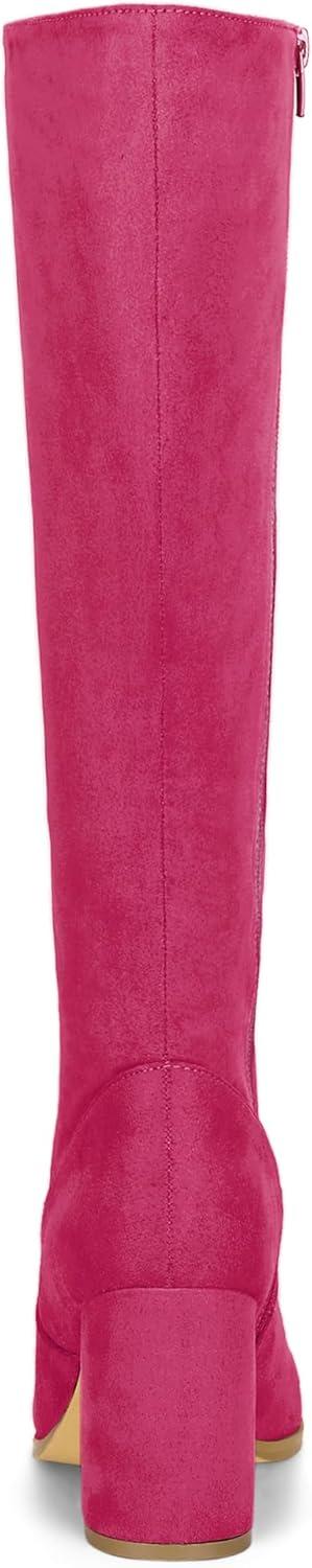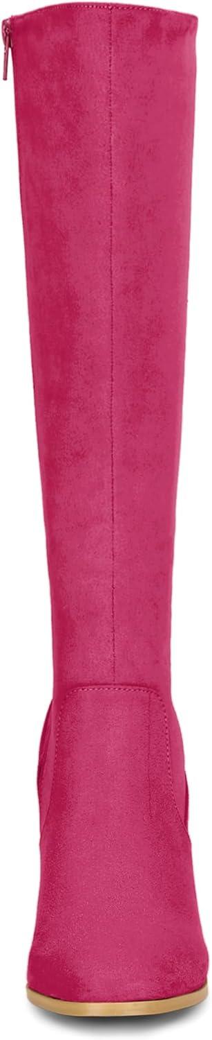 Allegra K Women's Side Zipper Chunky Heel Knee High Boots(Hot Pink)