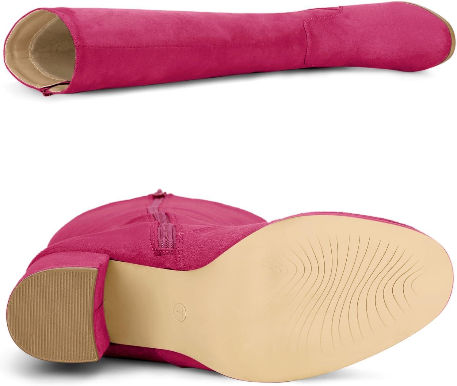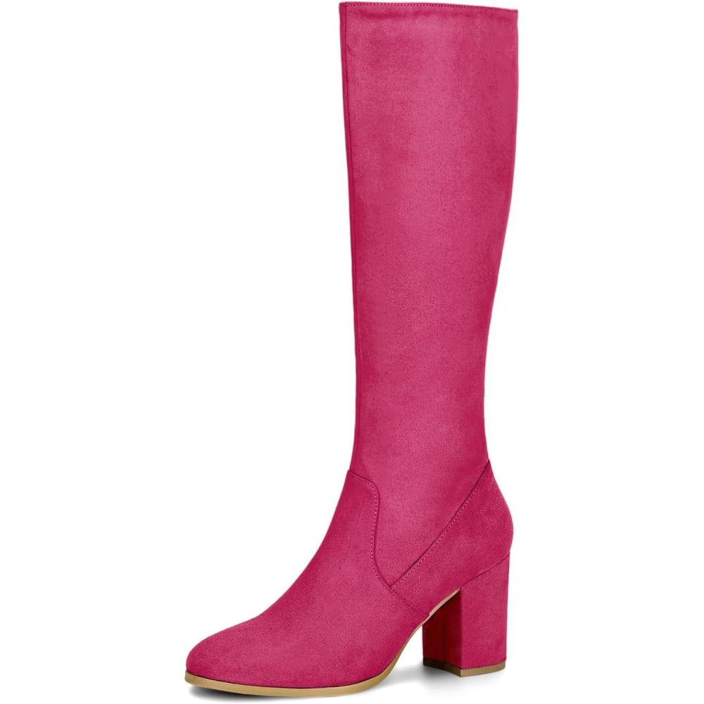 Allegra K Women’s Side Zipper Chunky Heel Knee High Boots(Hot Pink)