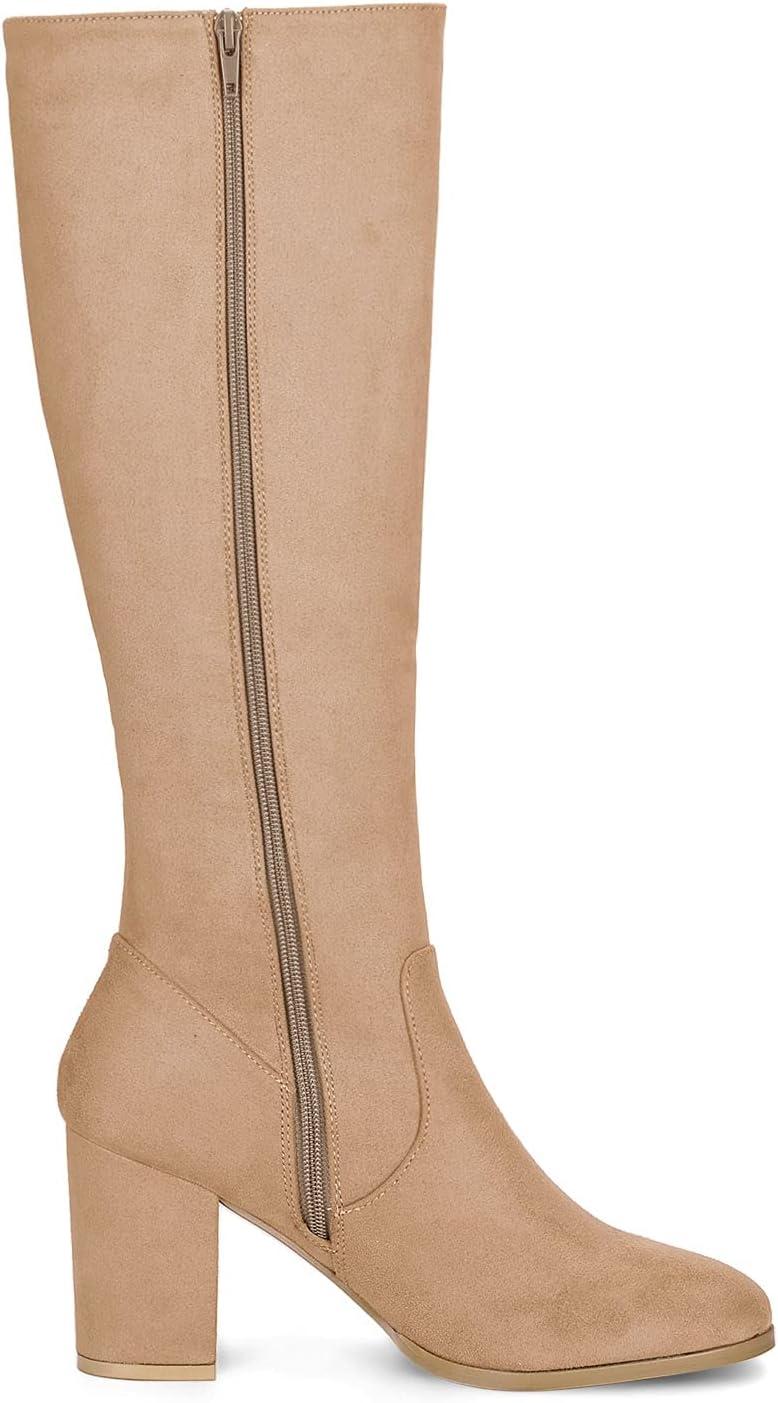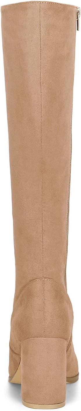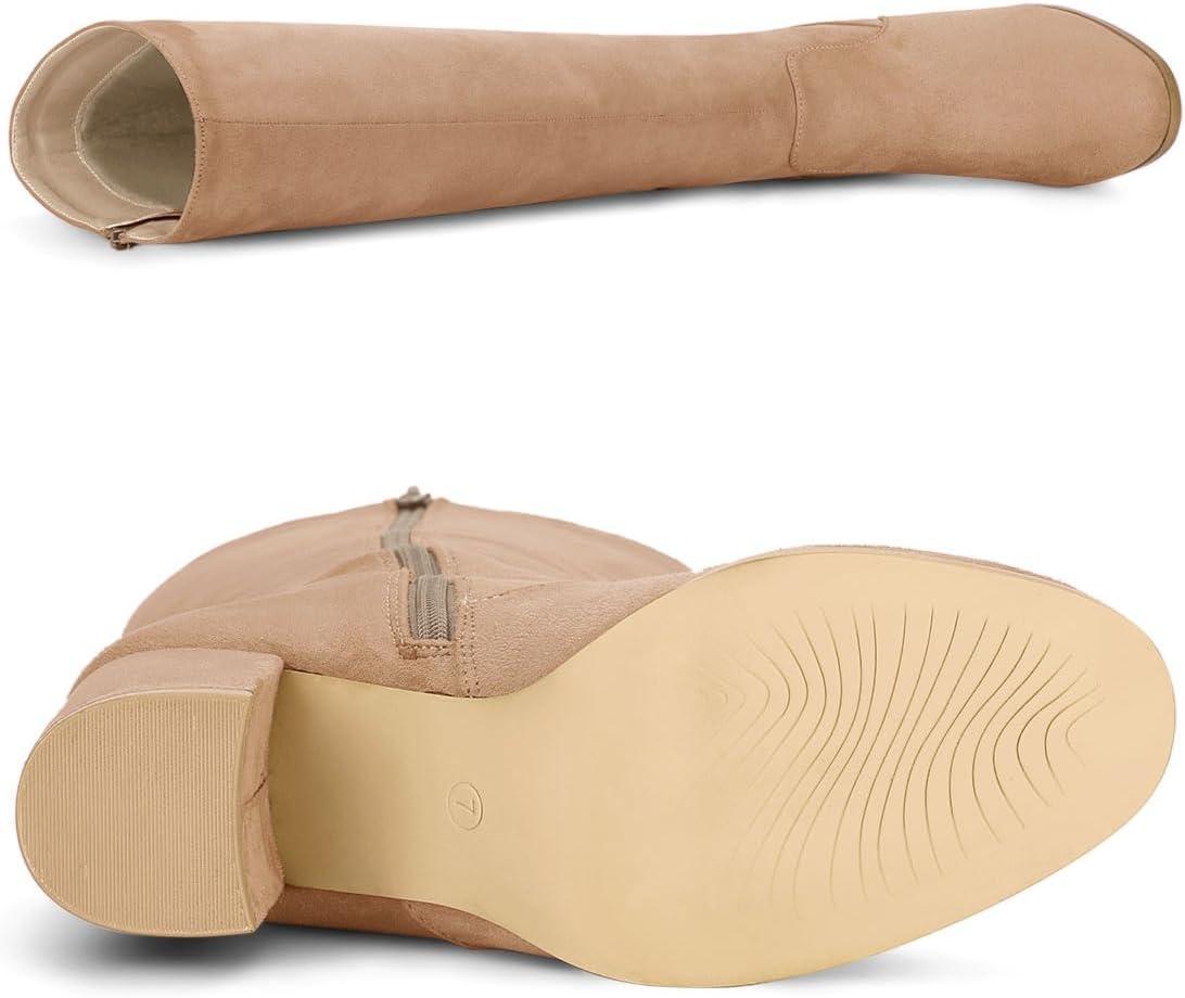 Allegra K Women’s Side Zipper Chunky Heel Knee High Boots(Khaki)