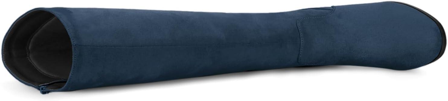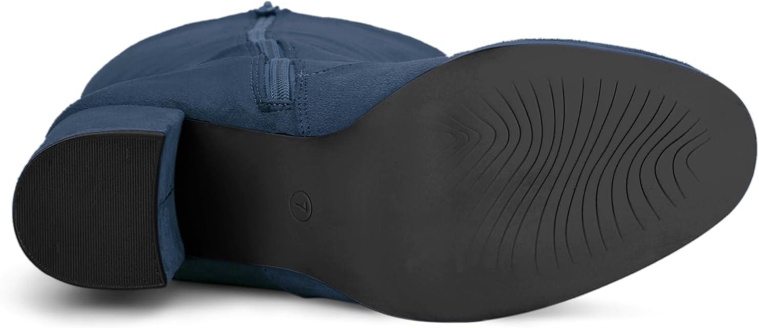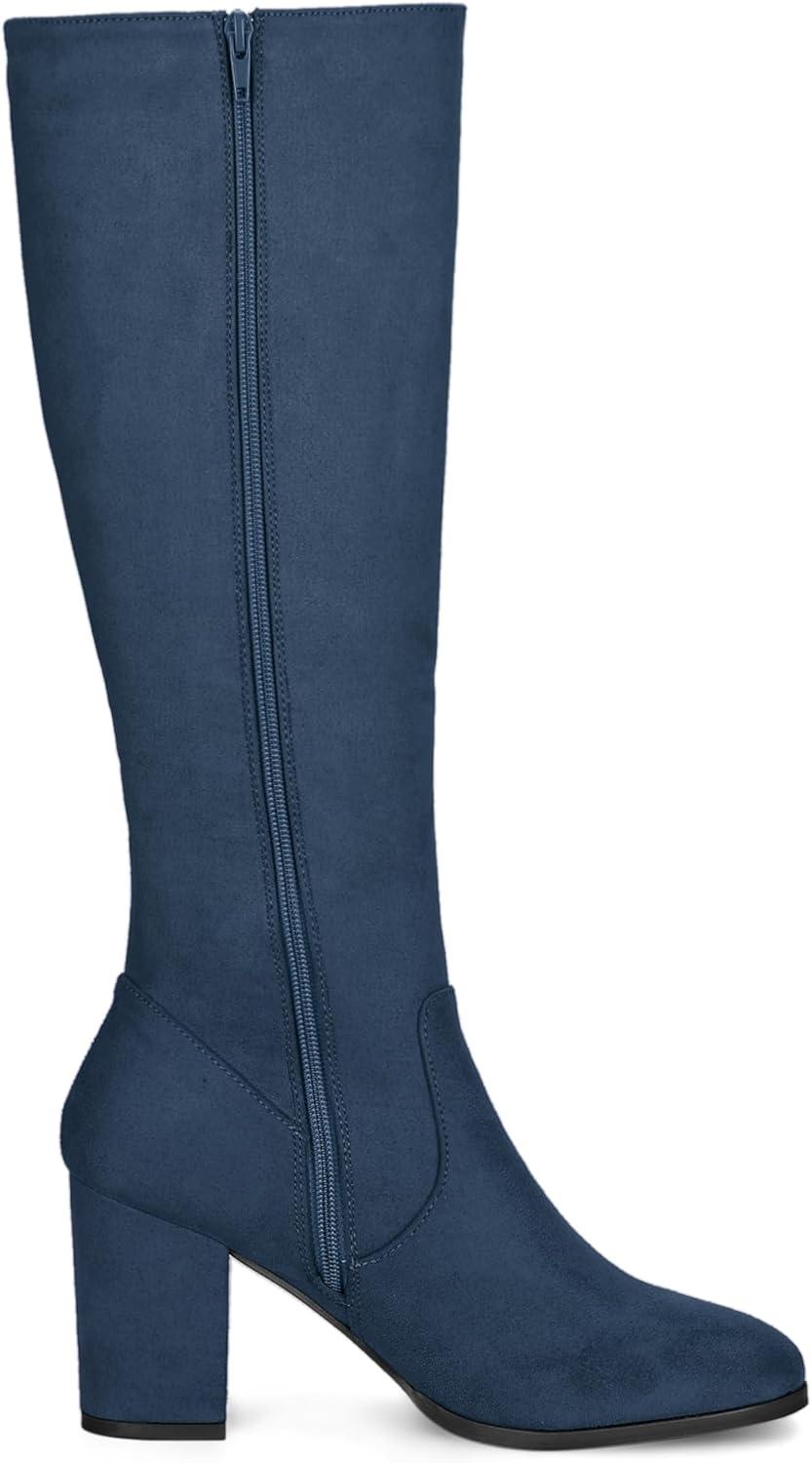 Allegra K Women’s Side Zipper Chunky Heel Knee High Boots(Navy Blue)
