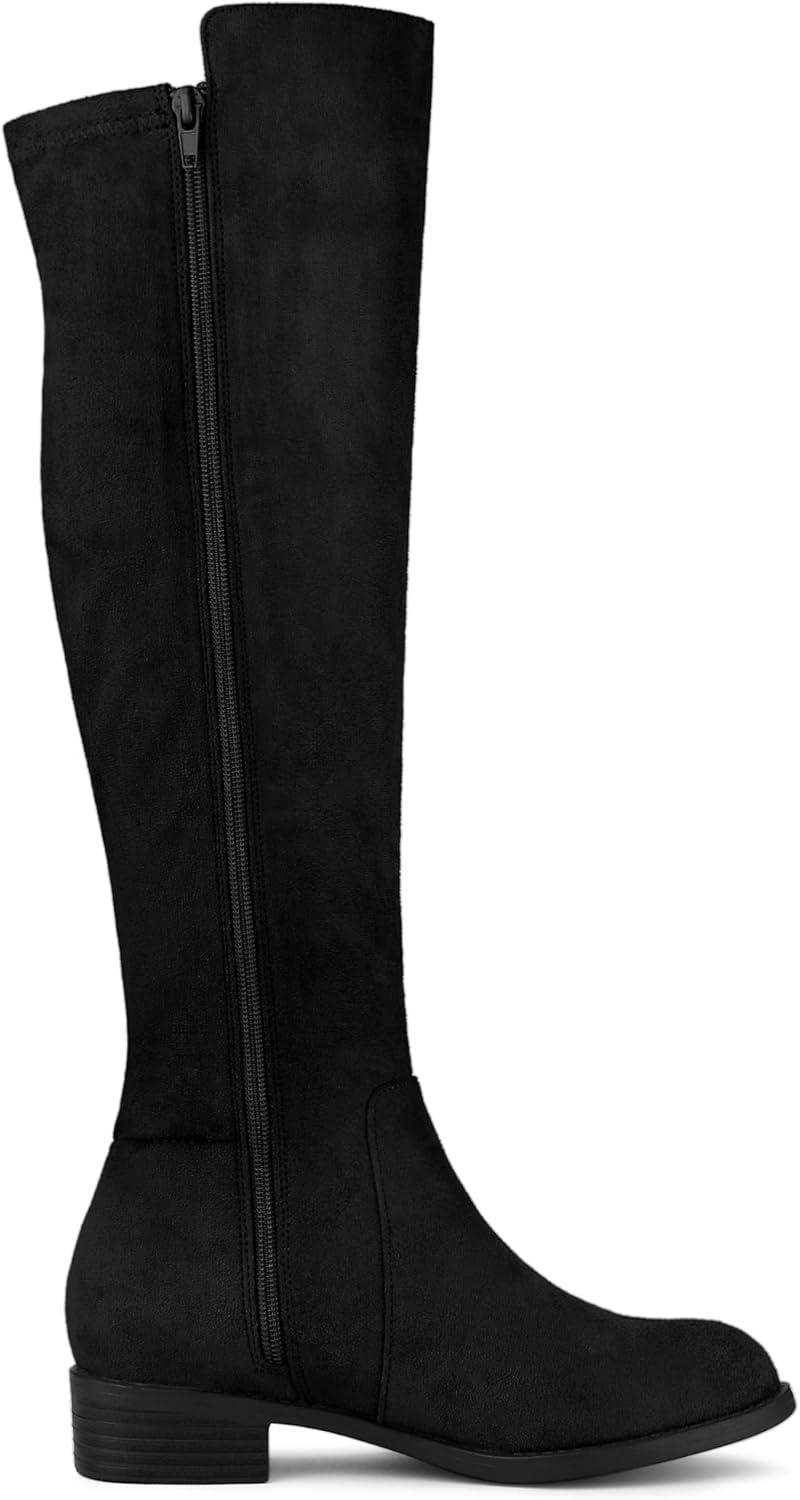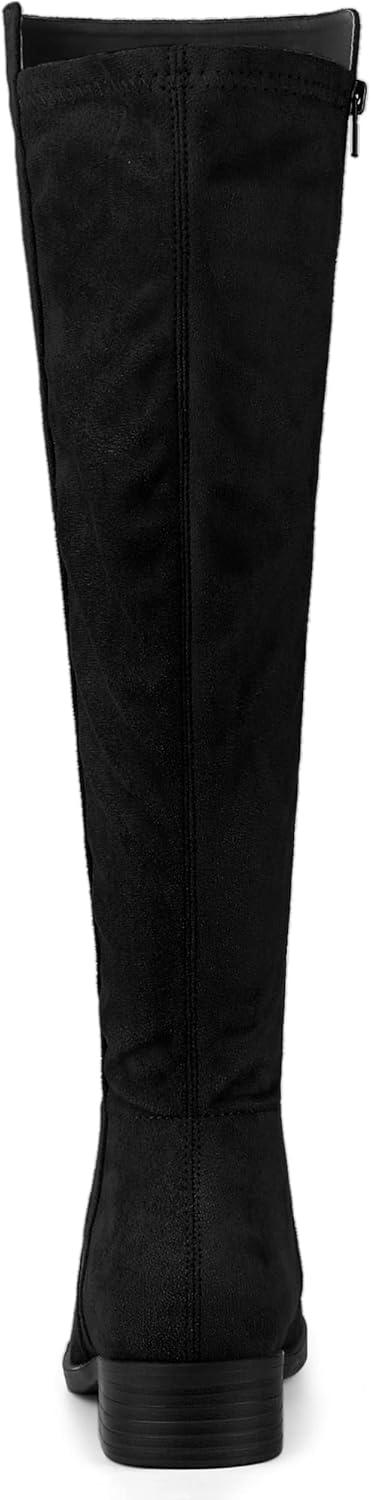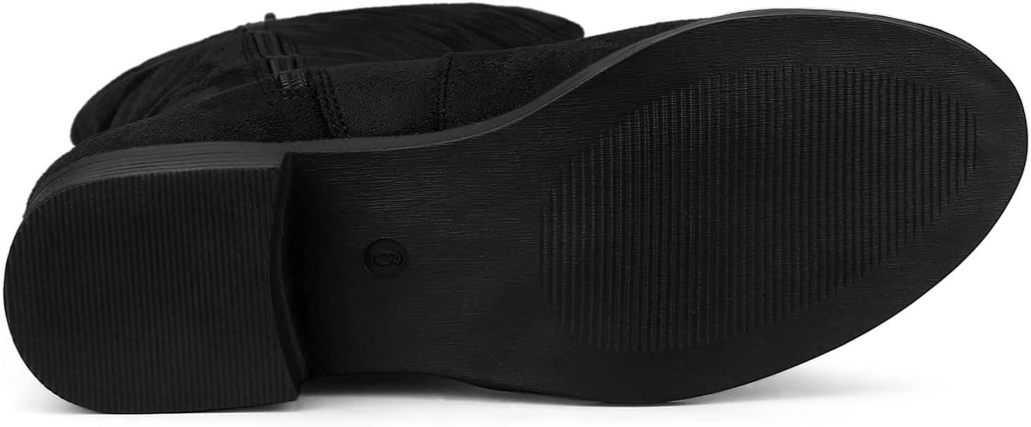 Allegra K Women’s Side Zipper Chunky Heels Knee High Boots(Black)