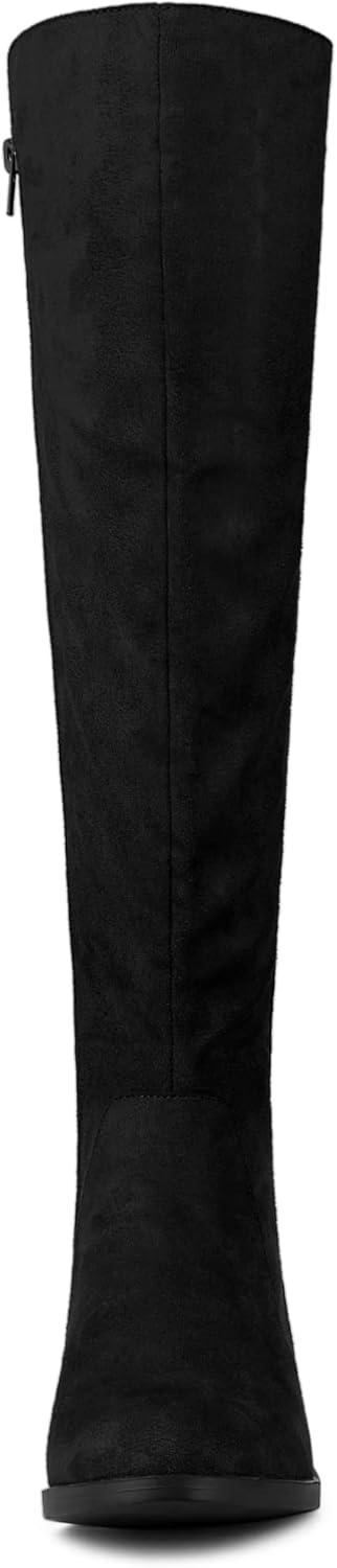 Allegra K Women's Side Zipper Chunky Heels Knee High Boots(Black)
