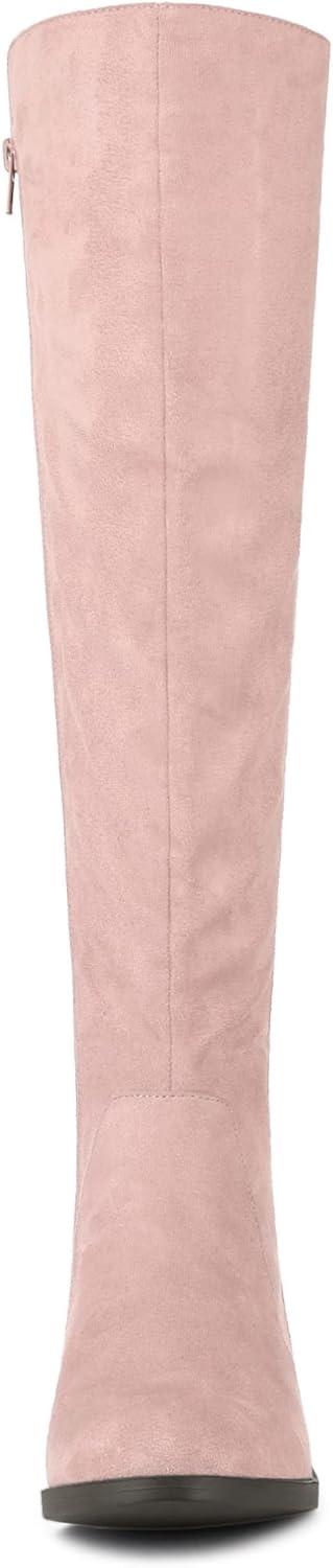 Allegra K Women's Side Zipper Chunky Heels Knee High Boots(Dust Pink)