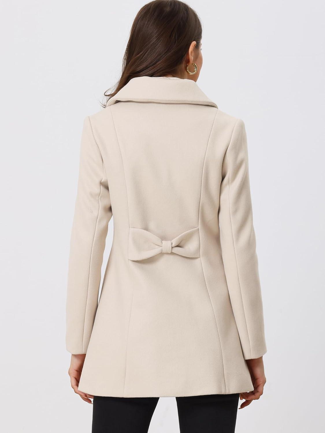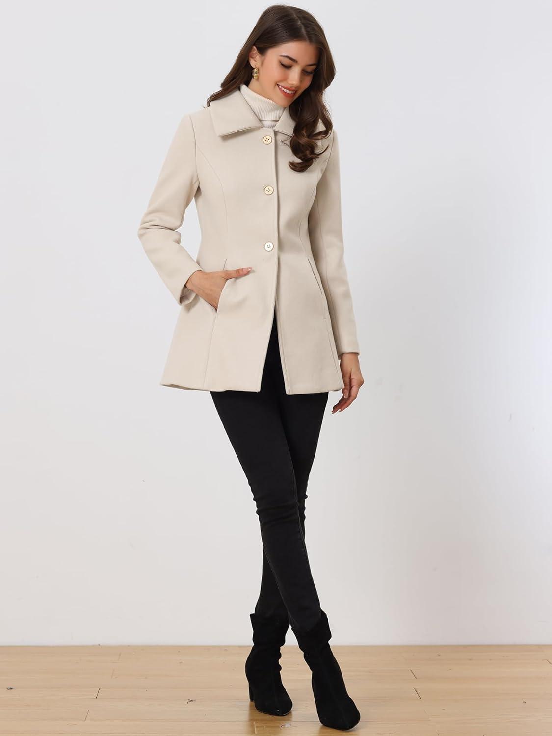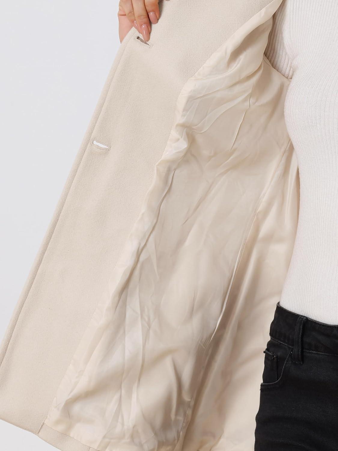 Allegra K Women’s Single Breasted Turndown Collar Overcoat Vintage Winter Dress Coat with Pockets(Cream White)