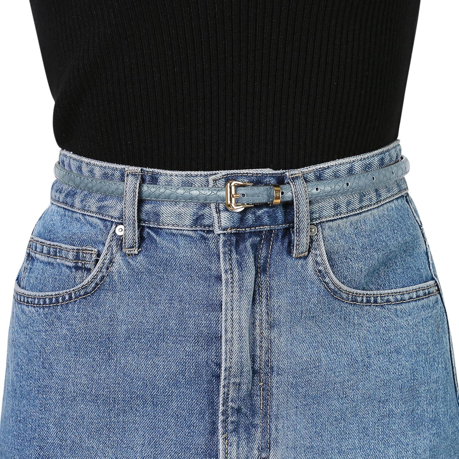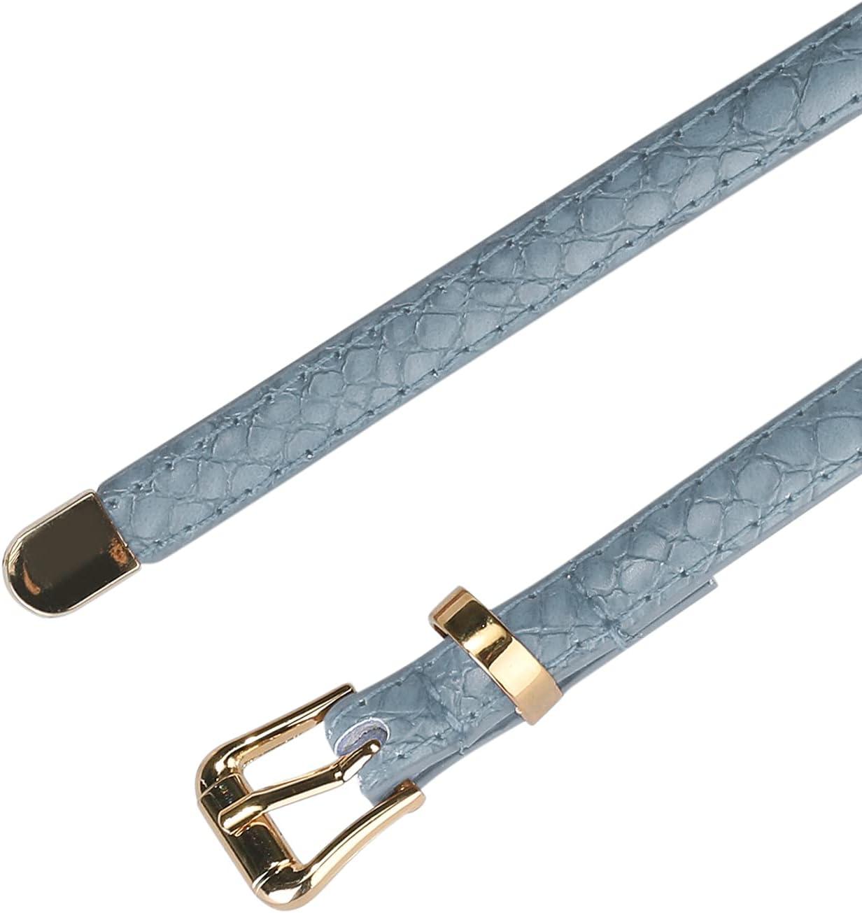 Allegra K Womens Skinny Embossed Leather Belts Alloy Pin Buckle Belt for Jeans Dresses Pants(Grey-blue)