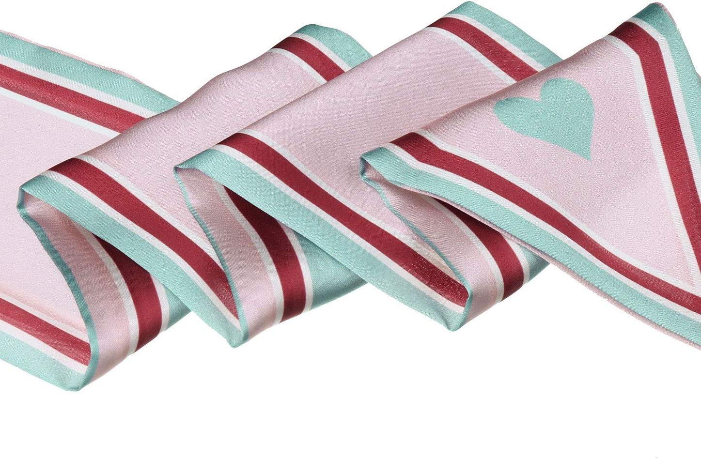 Allegra K Women’s Skinny Scarf Ribbon Hair Band Heart Print Handbag Handle Neck Scarf(Pink Heart)