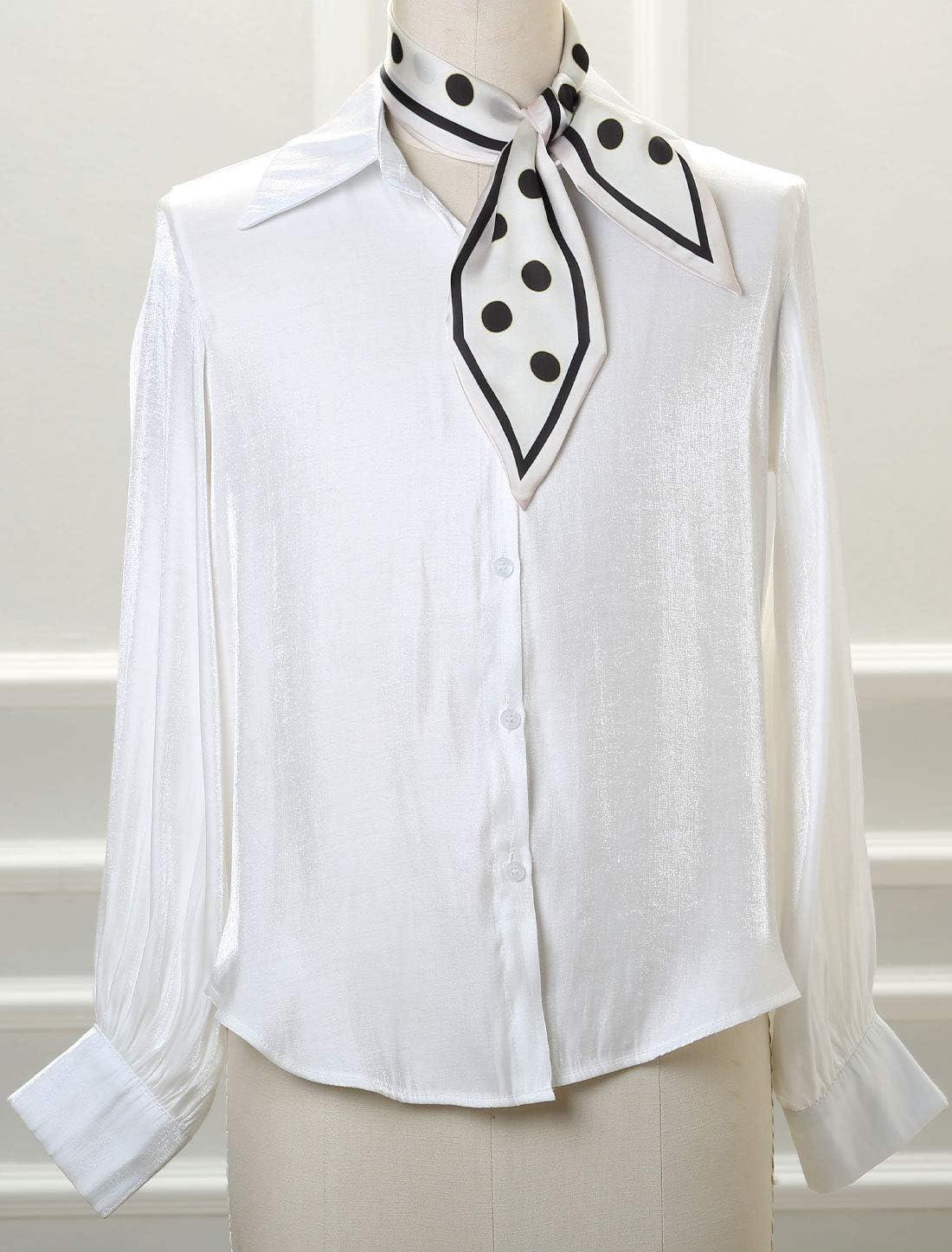 Allegra K Women’s Skinny Scarf Ribbon Hair Band Heart Print Handbag Handle Neck Scarf(White Dot)