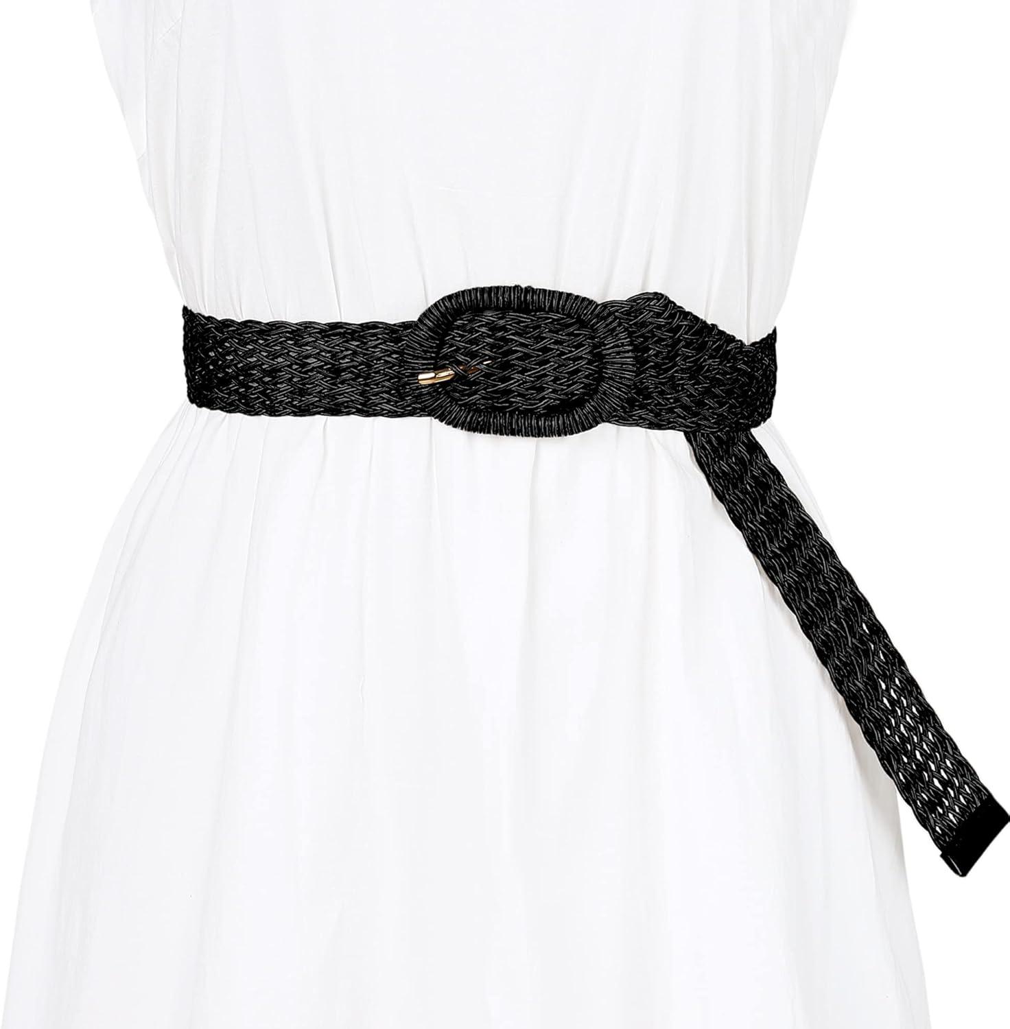 Allegra K Womens Skinny Waist Belts Braided Woven Bohemian Belts for Dress Metal Buckle(Black)