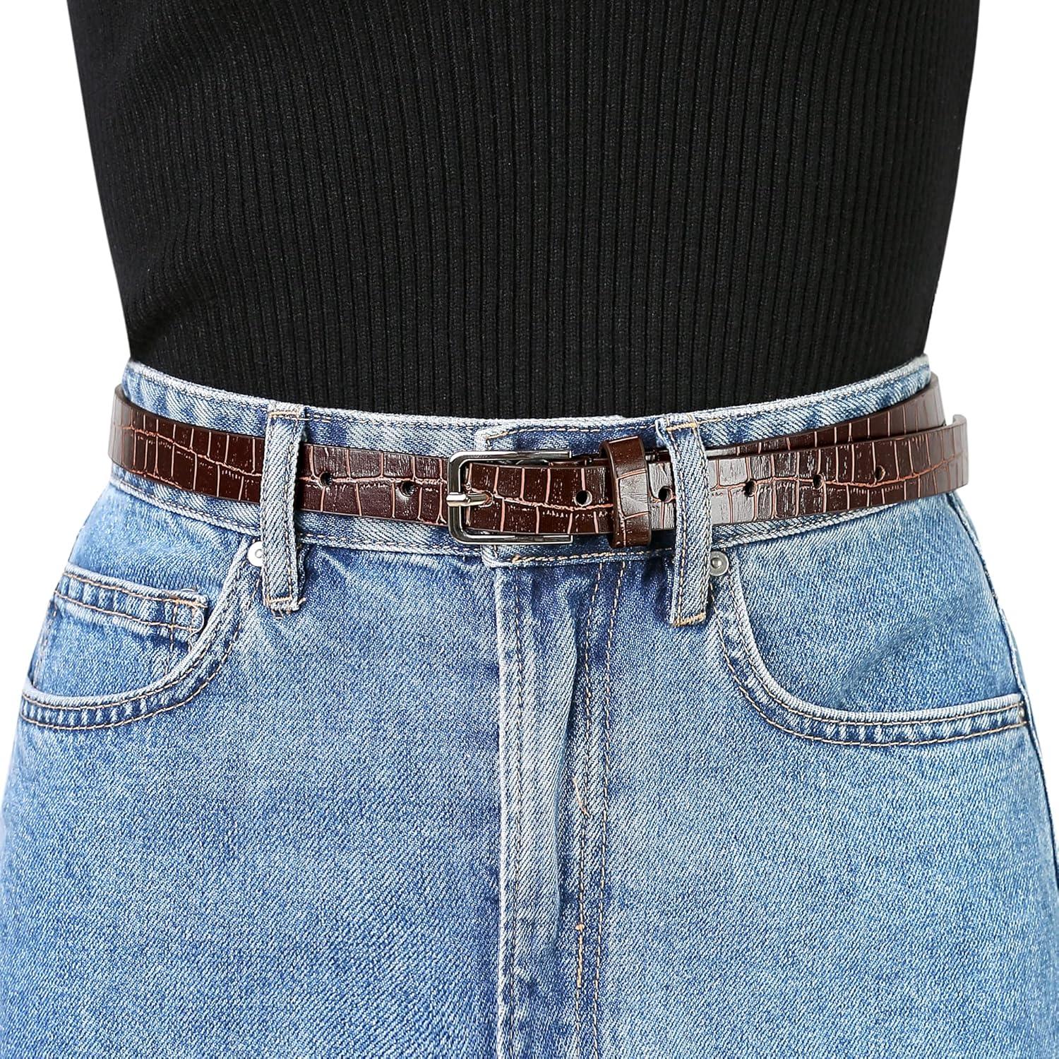 Allegra K Women's Skinny Waist Belts Single Pin Buckle Cute Animal Printed Pants Dress Thin Faux Leather Belt(Stone Pattern Coffee)