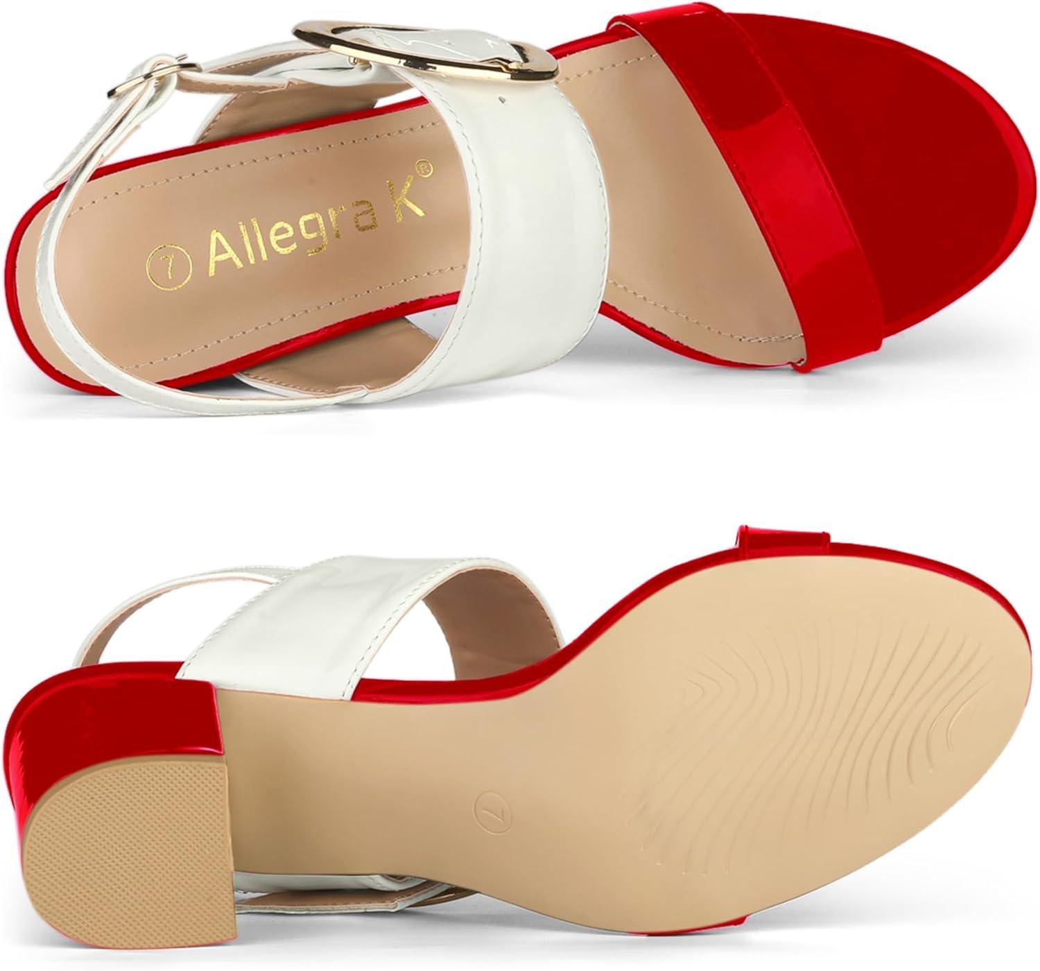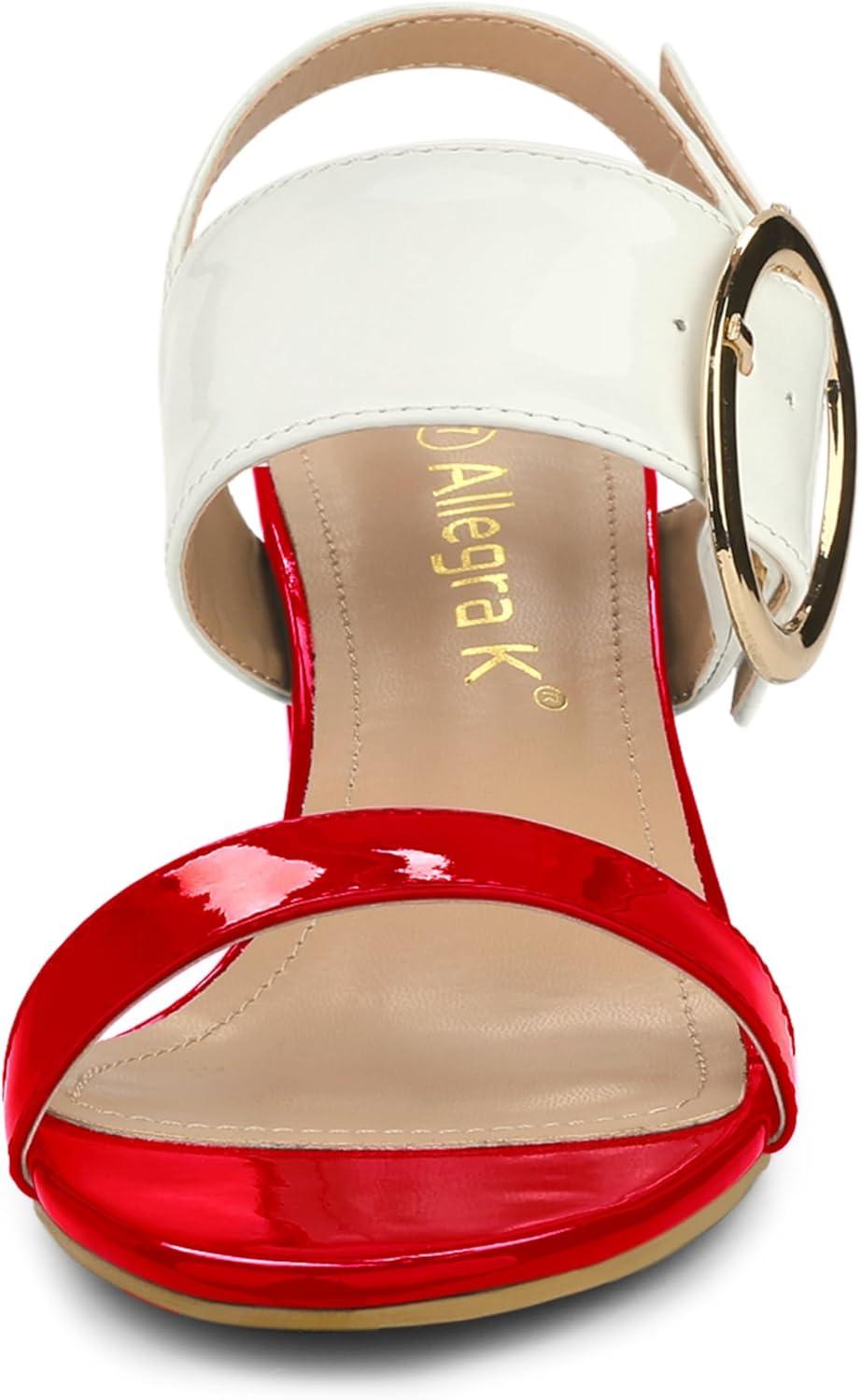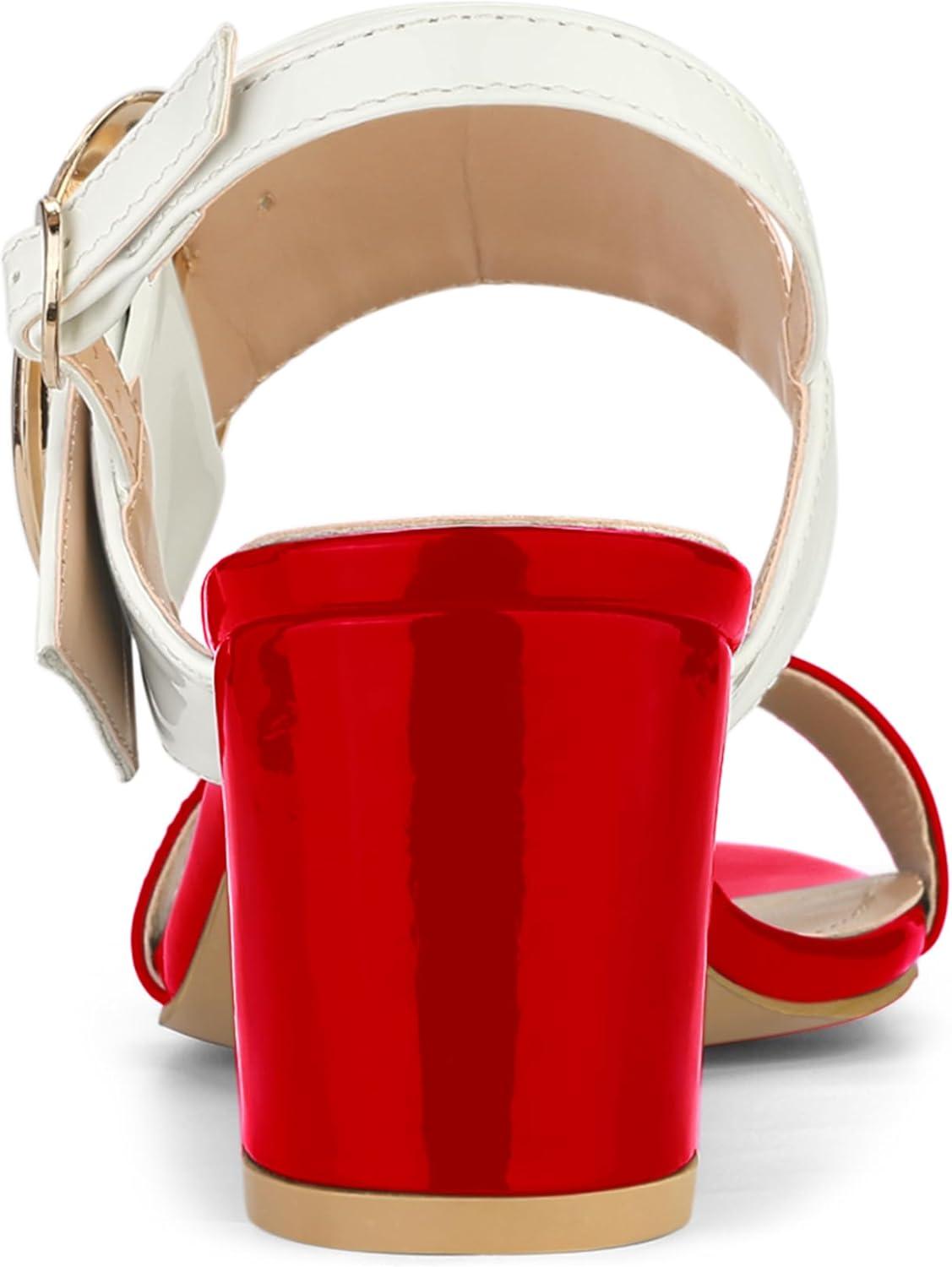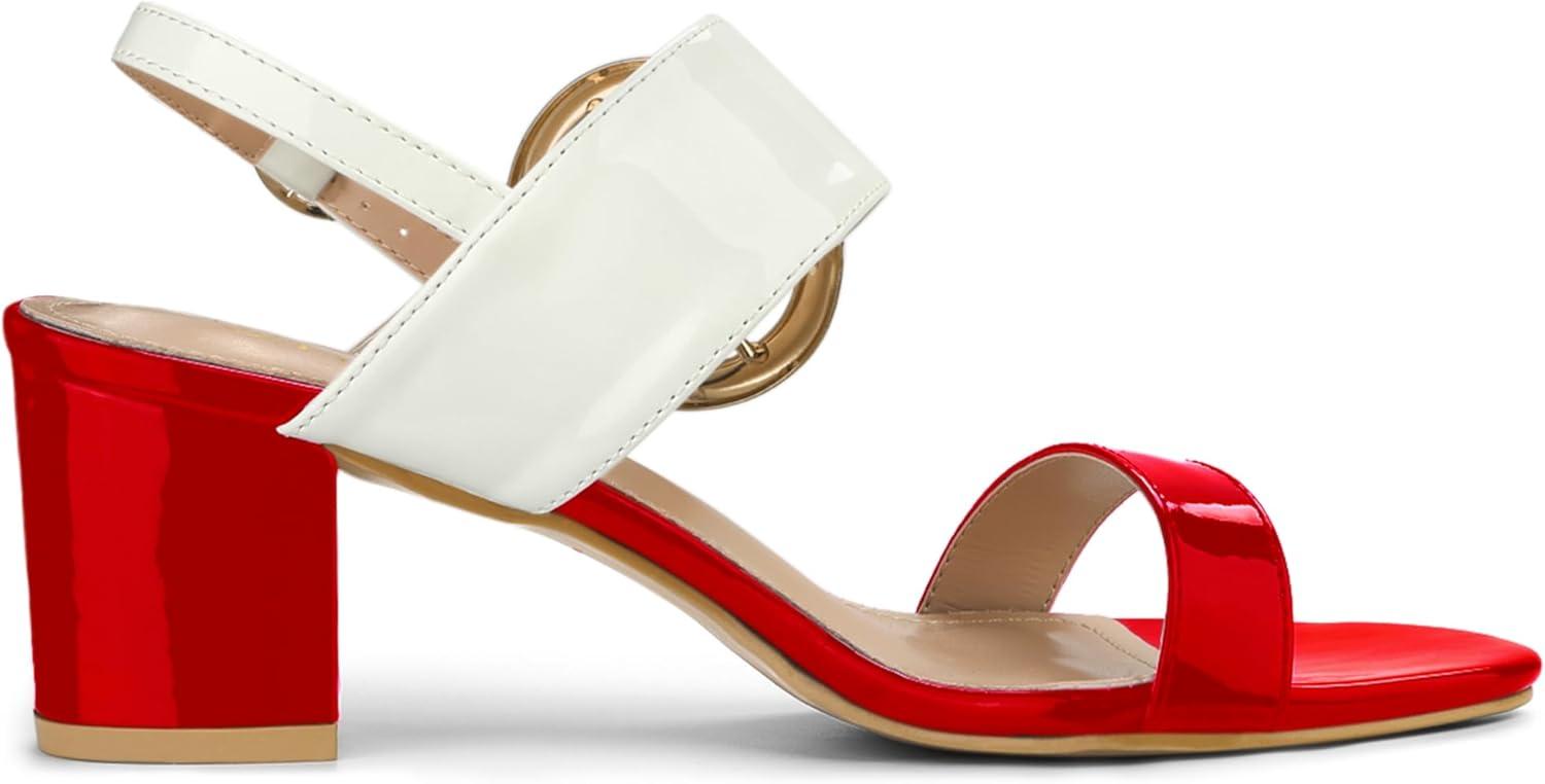 Allegra K Women’s Slingback Block High Heel Sandals(Red White)