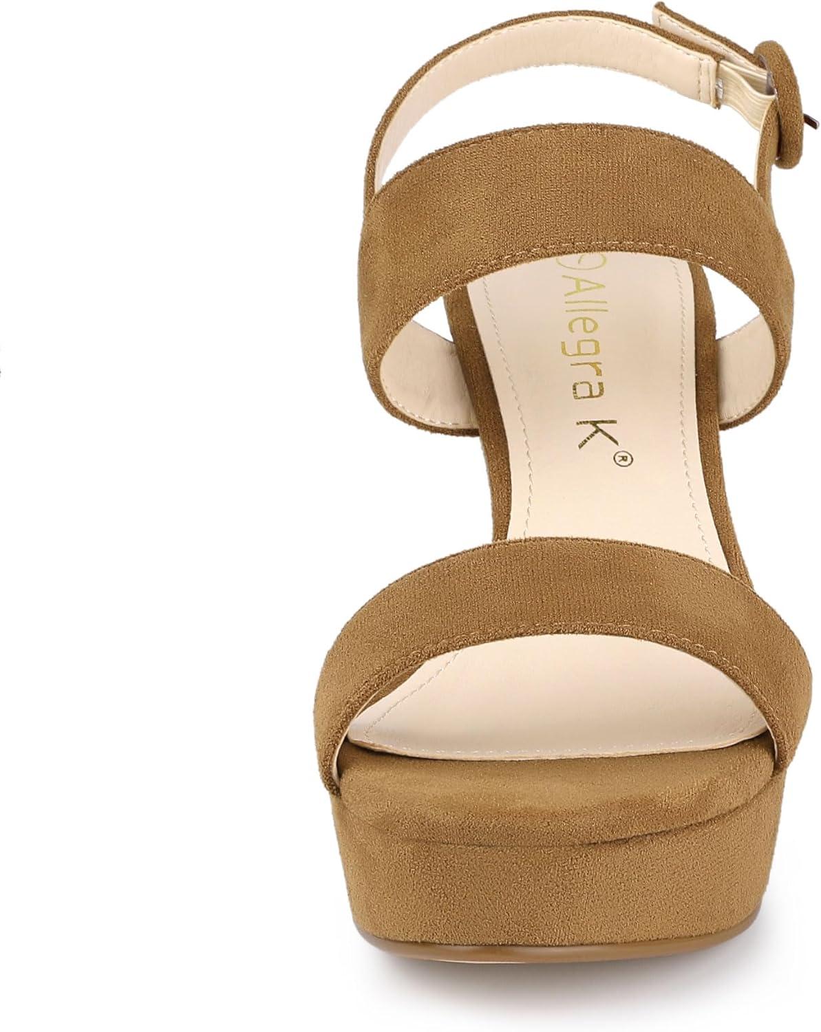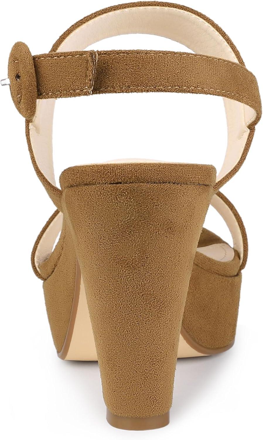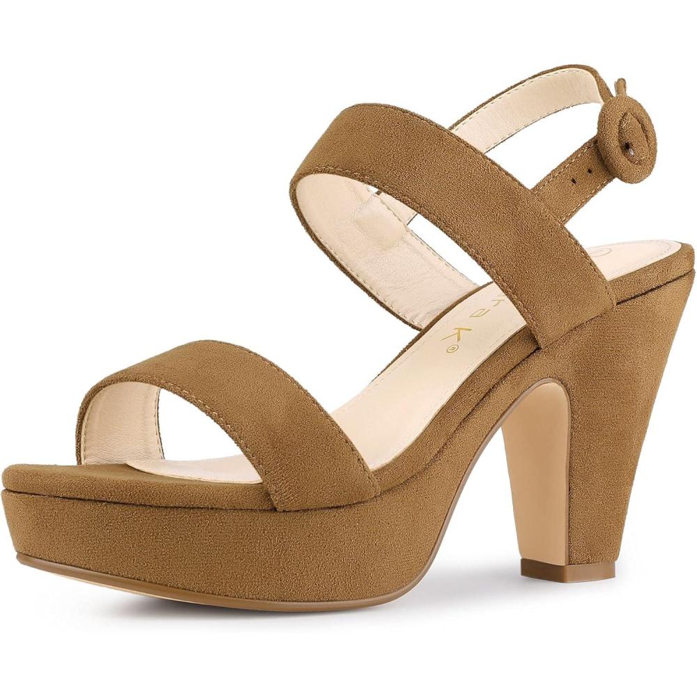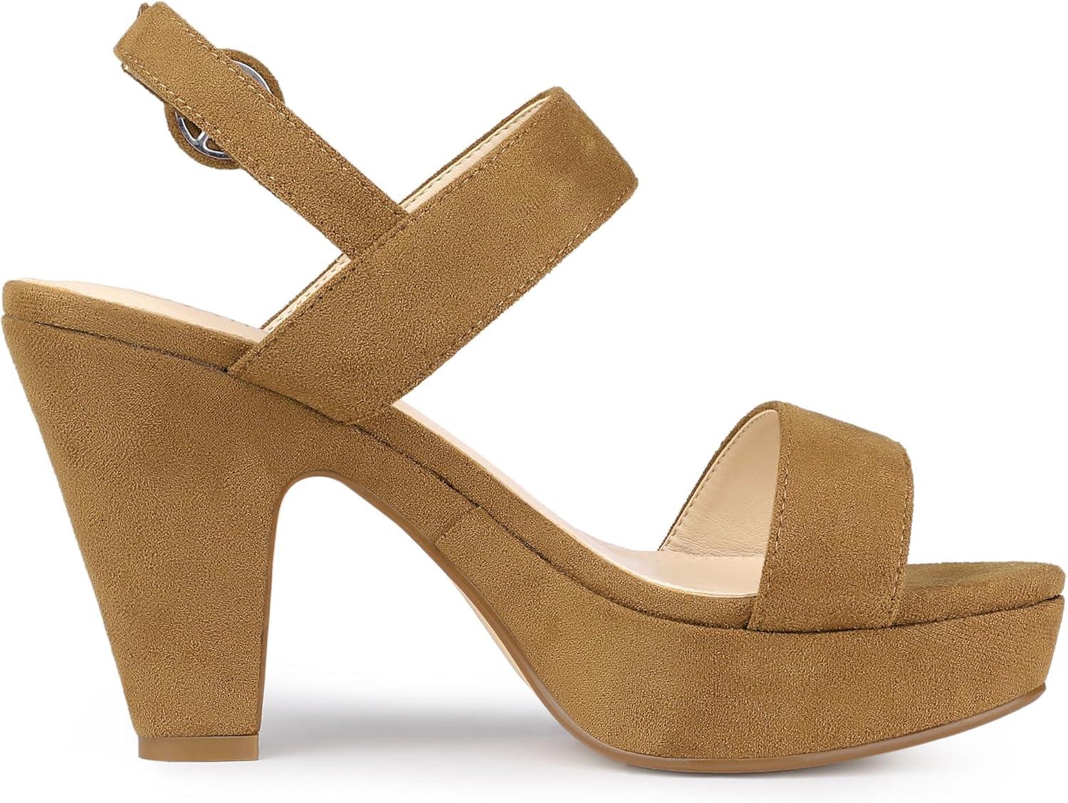 Allegra K Women’s Slingback Platform Heels Chunky High Heel Sandals(Brown)