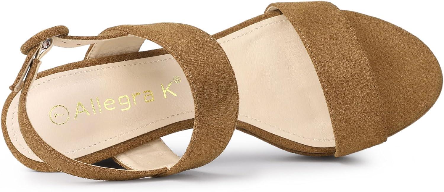 Allegra K Women's Slingback Platform Heels Chunky High Heel Sandals(Brown)