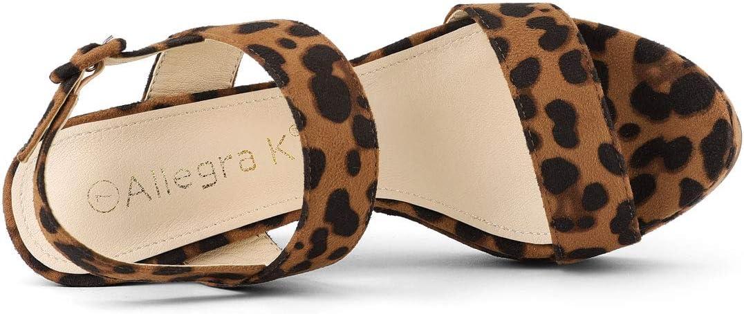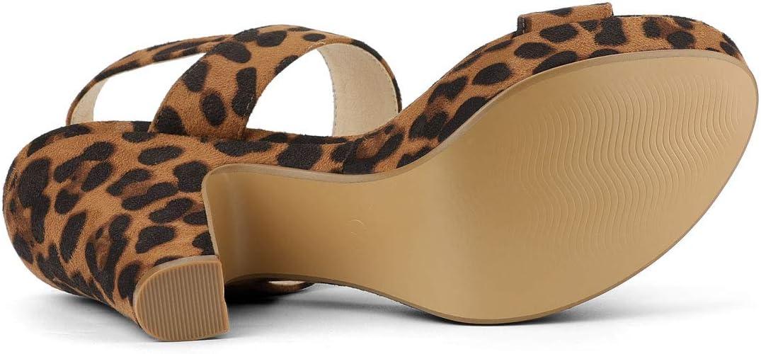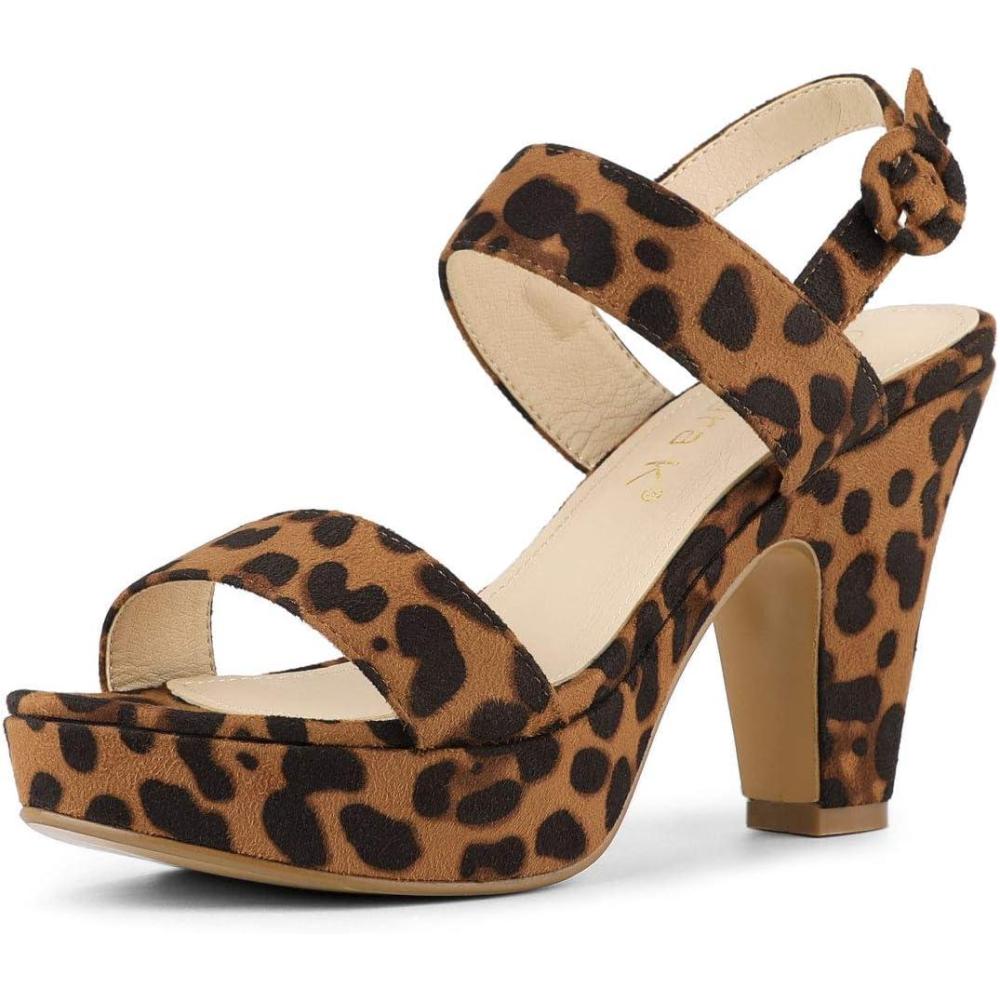 Allegra K Women’s Slingback Platform Heels Chunky High Heel Sandals(Leopard)