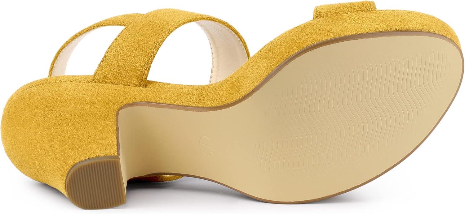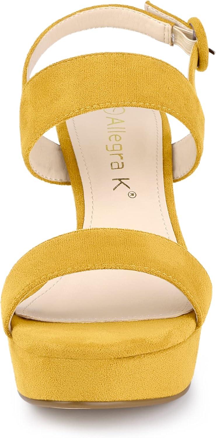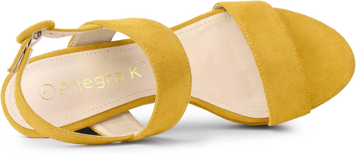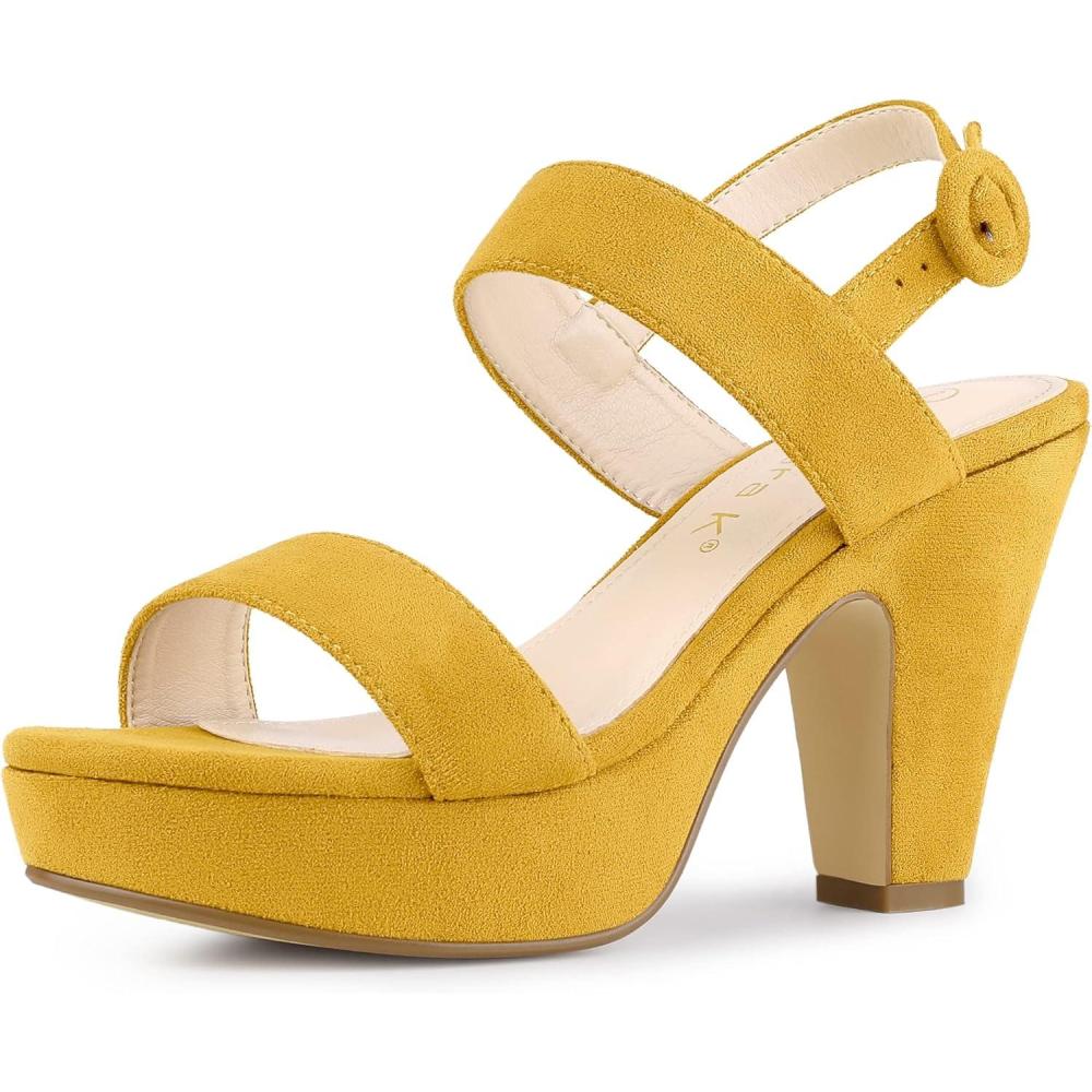 Allegra K Women’s Slingback Platform Heels Chunky High Heel Sandals(Yellow)