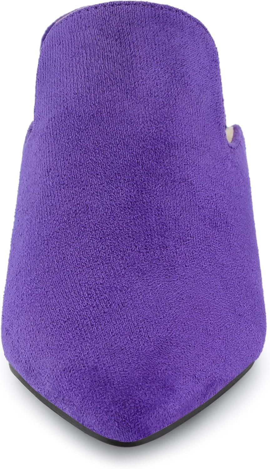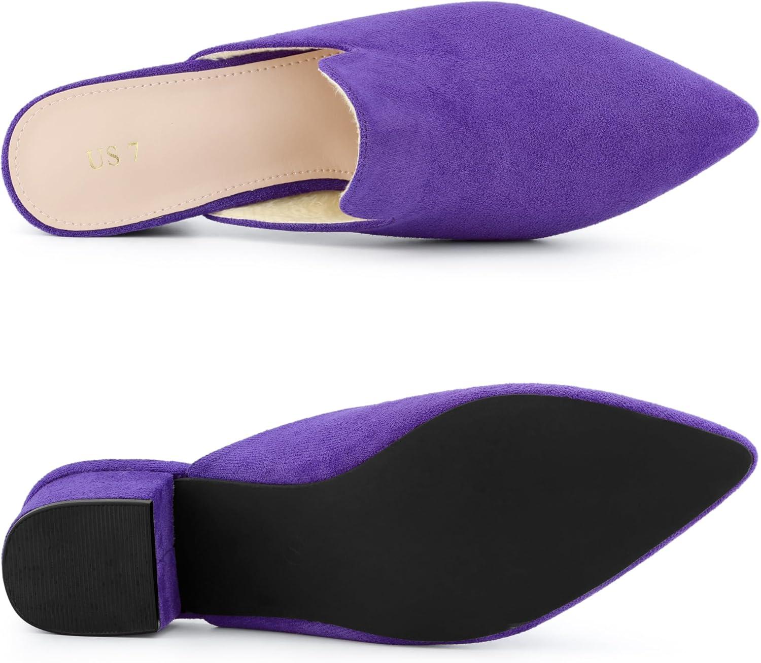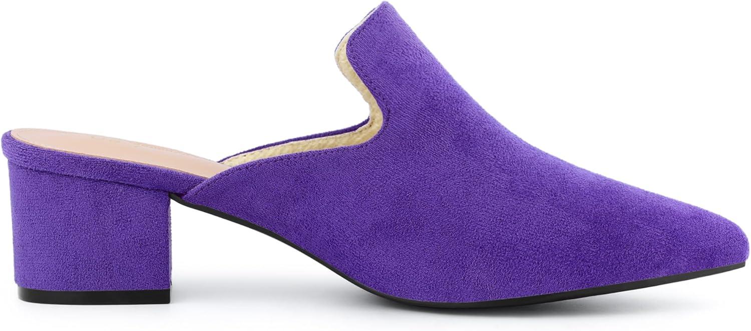 Allegra K Women's Slip on Pointed Toe Chunky Heels Slide Mules(Purple)