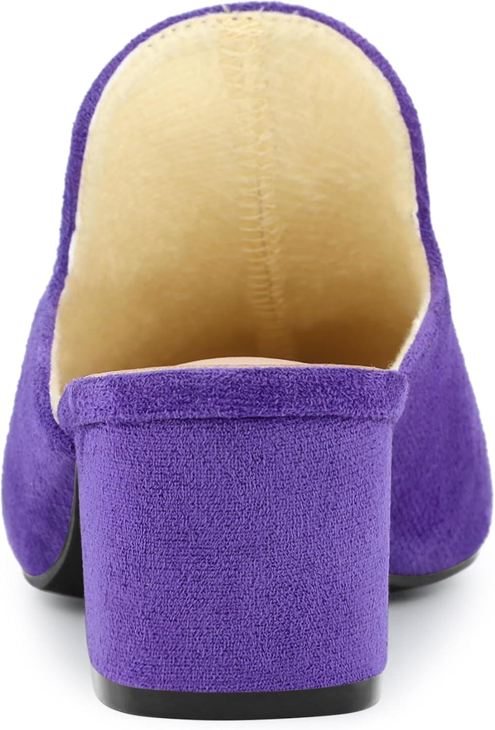 Allegra K Women’s Slip on Pointed Toe Chunky Heels Slide Mules(Purple)