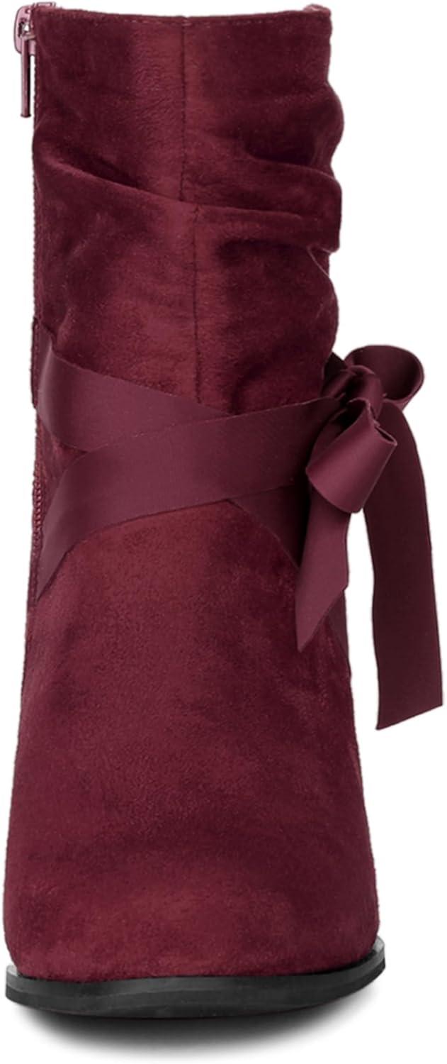 Allegra K Women's Slouch Chunky Heel Ankle Boots(Burgundy)