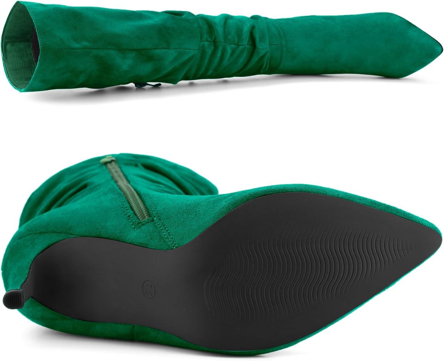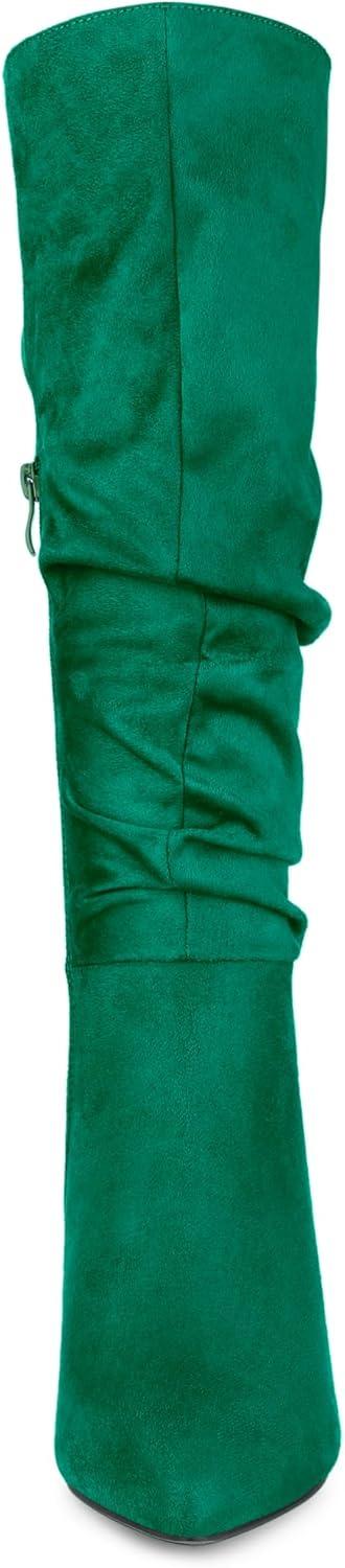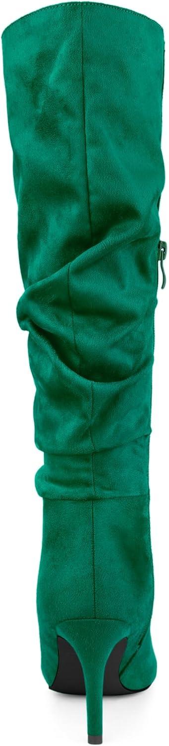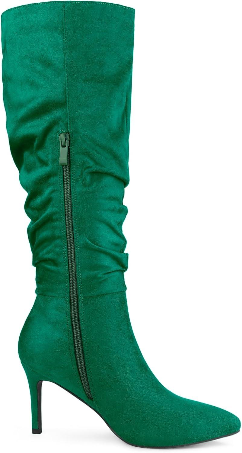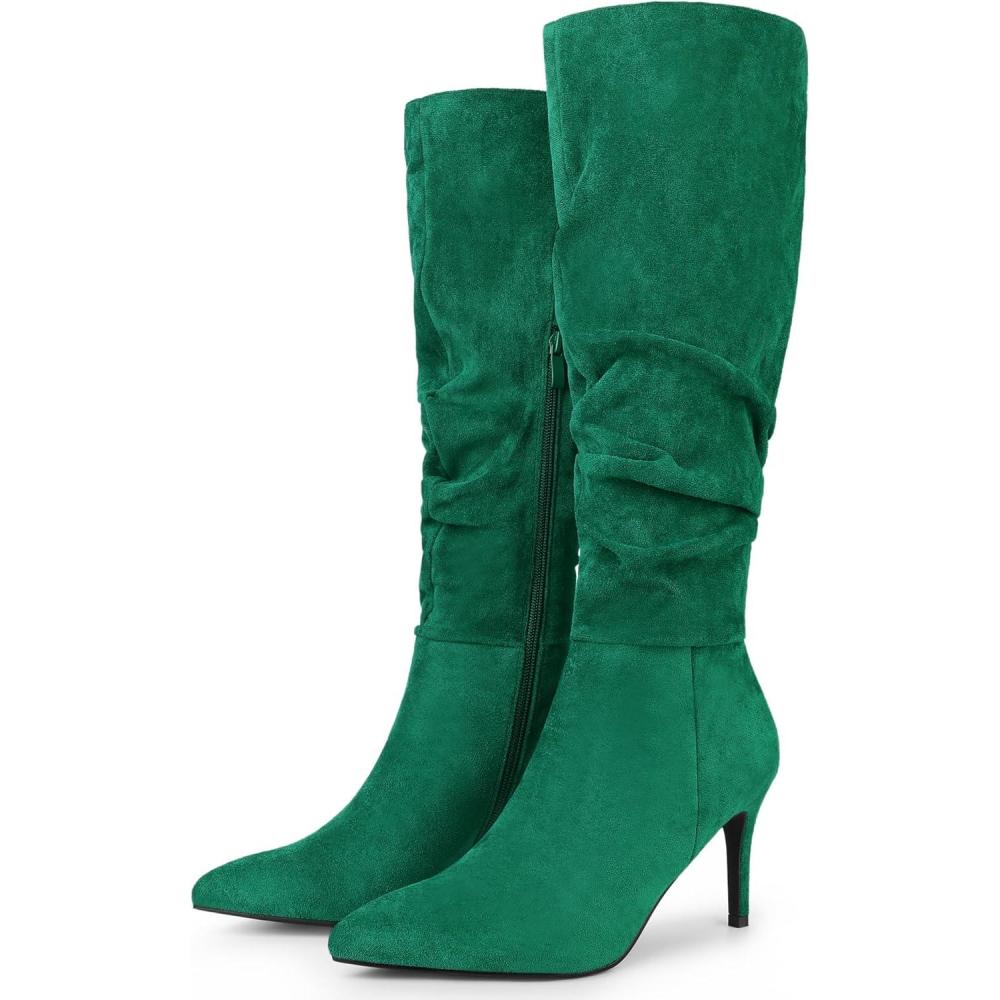 Allegra K Women's Slouch Pointed Toe Stiletto Heel Knee High Boots(Green)