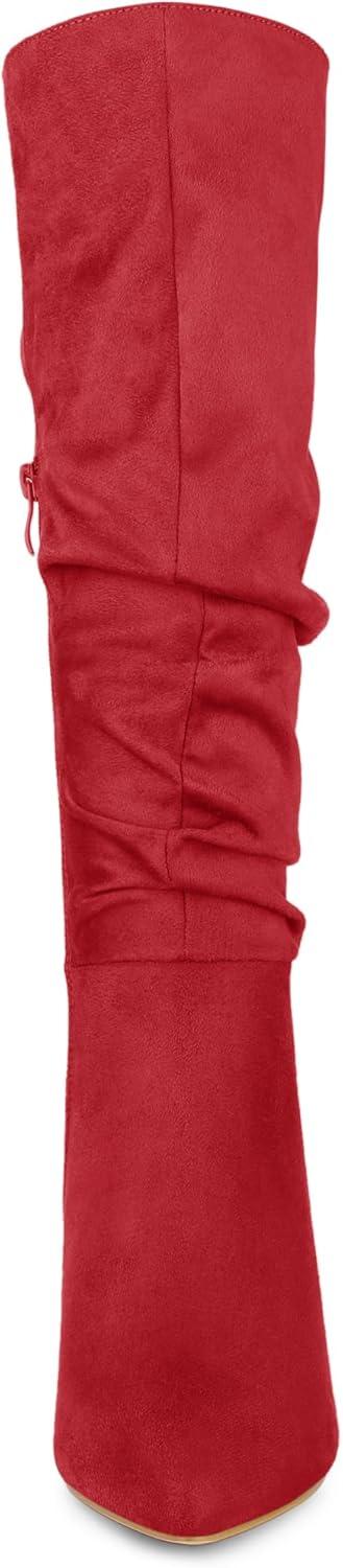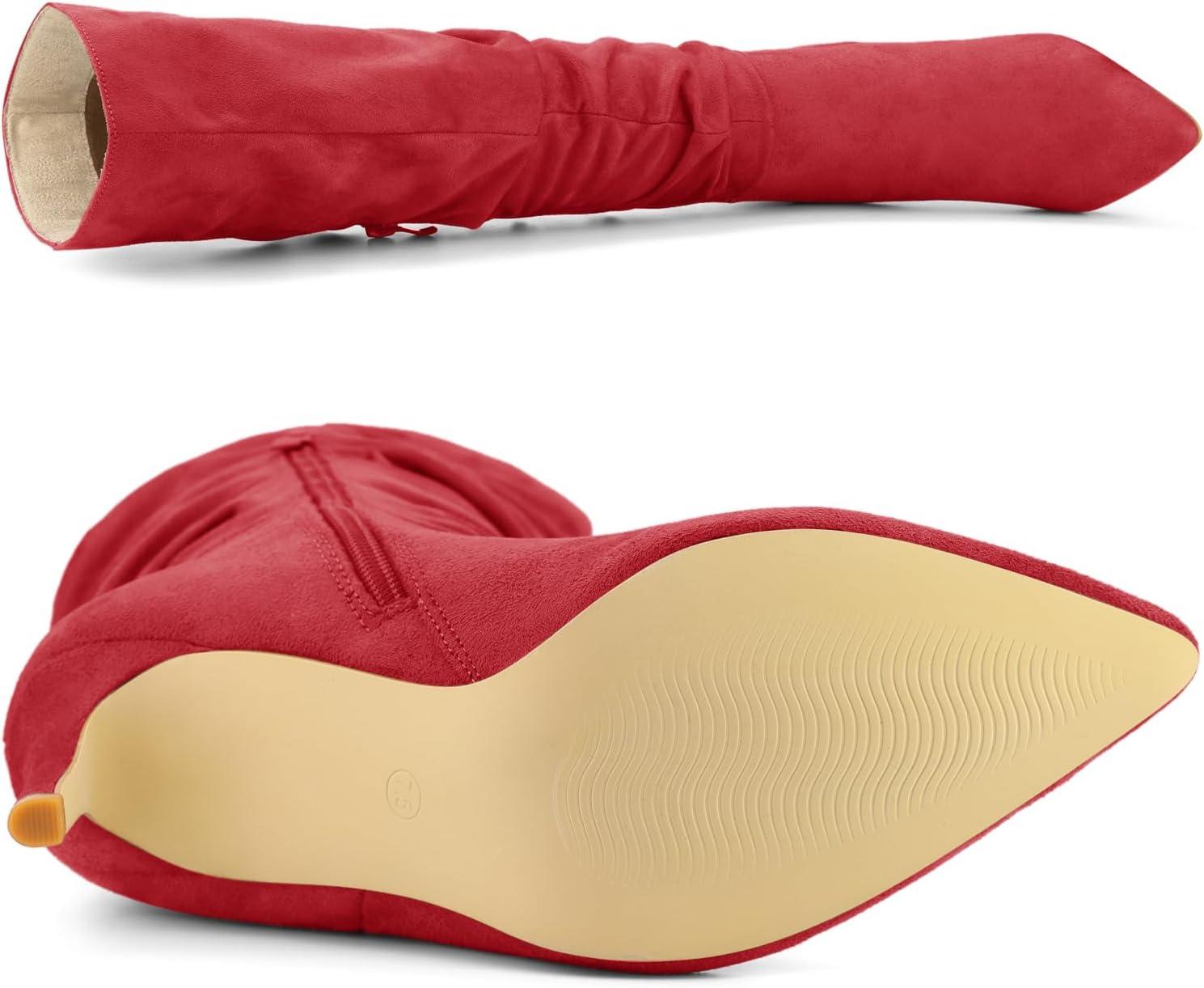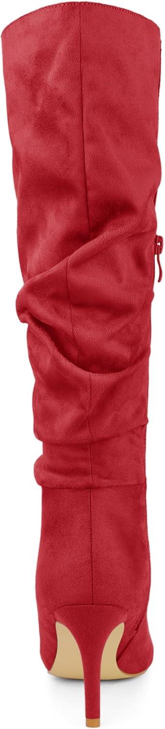 Allegra K Women's Slouch Pointed Toe Stiletto Heel Knee High Boots(Red)