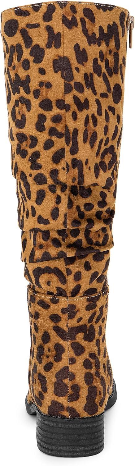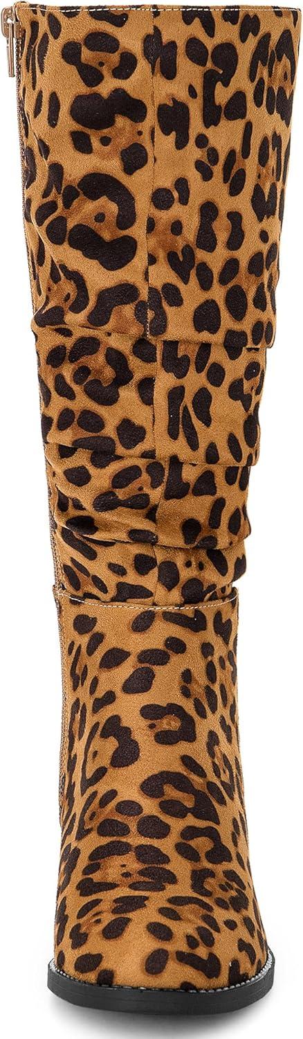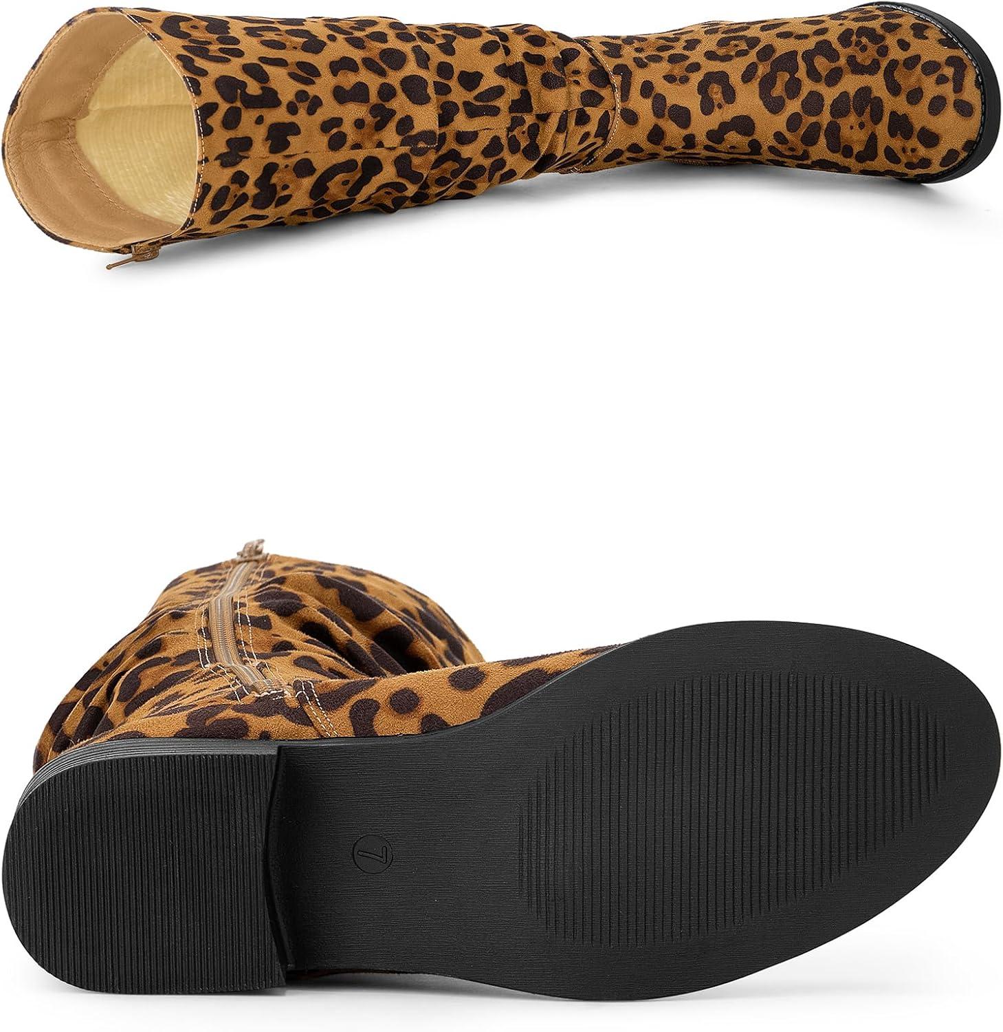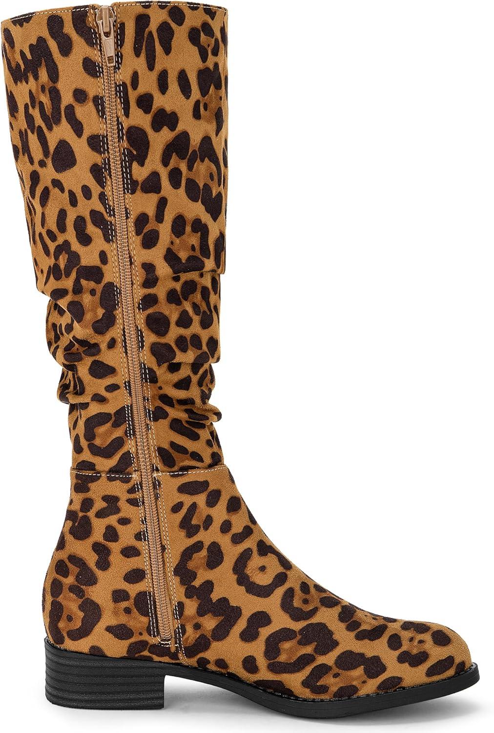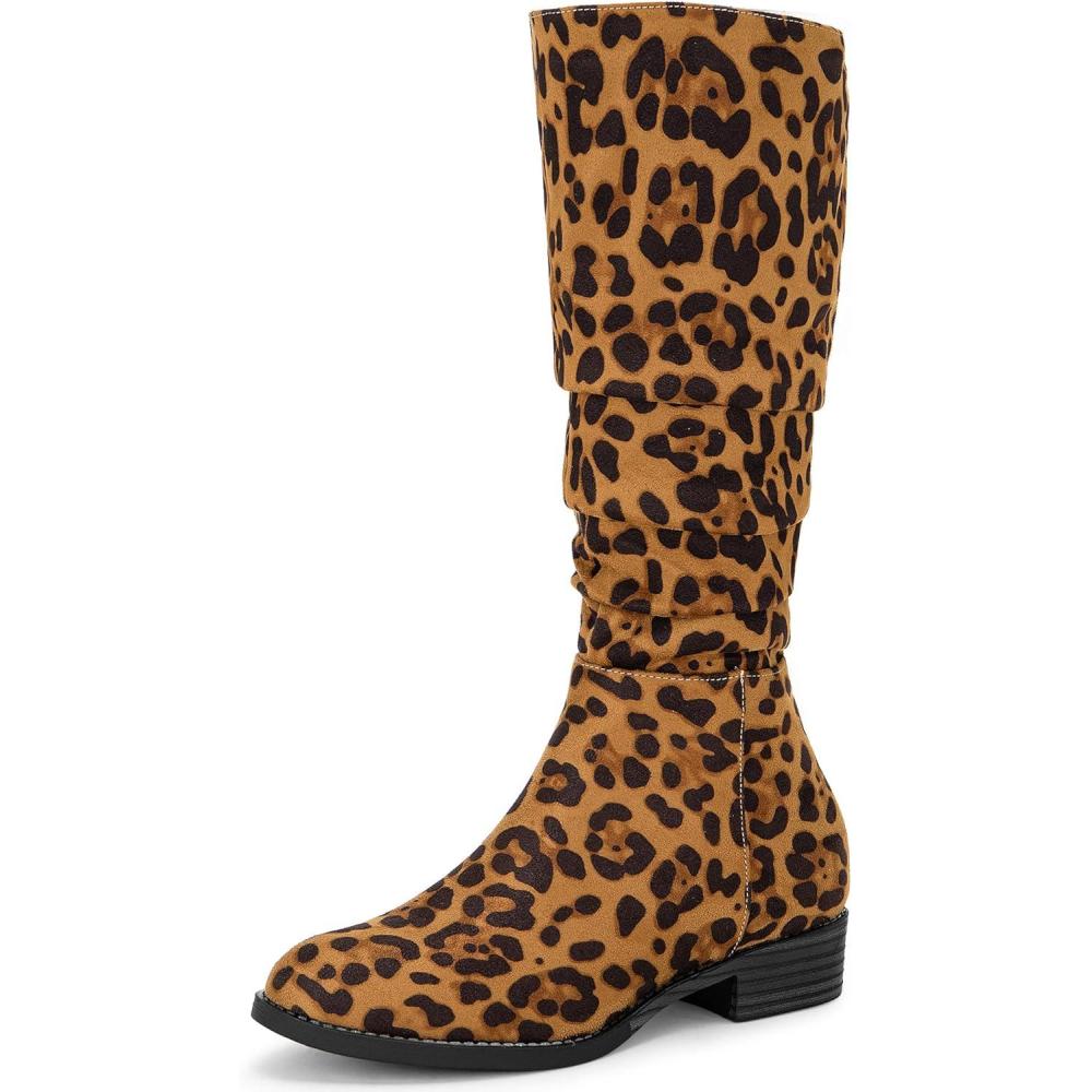 Allegra K Women’s Slouch Round Toe Low Heel Boots Knee High Boots(Leopard)