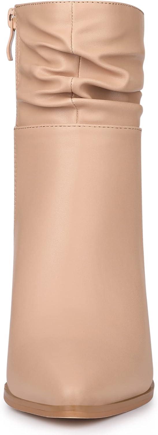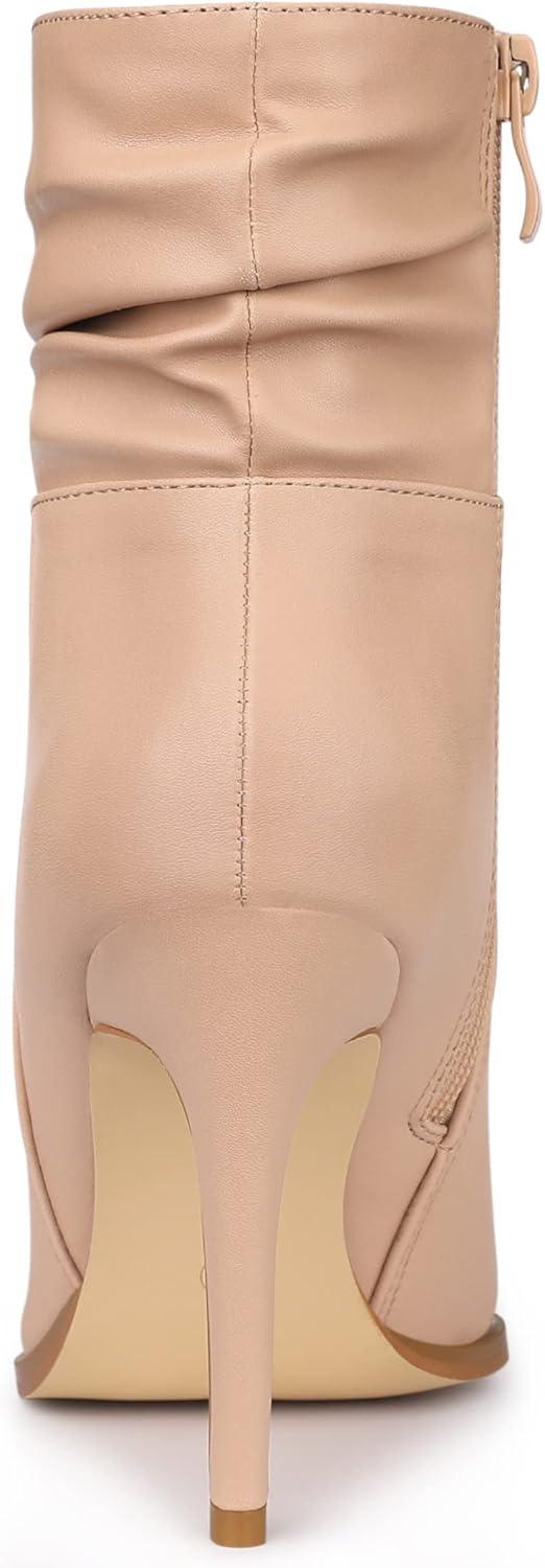 Allegra K Women's Slouched Pointed Toe Stiletto Heels Ankle Boot(Nude)
