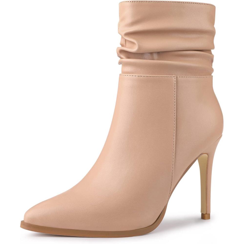 Allegra K Women’s Slouched Pointed Toe Stiletto Heels Ankle Boot(Nude)