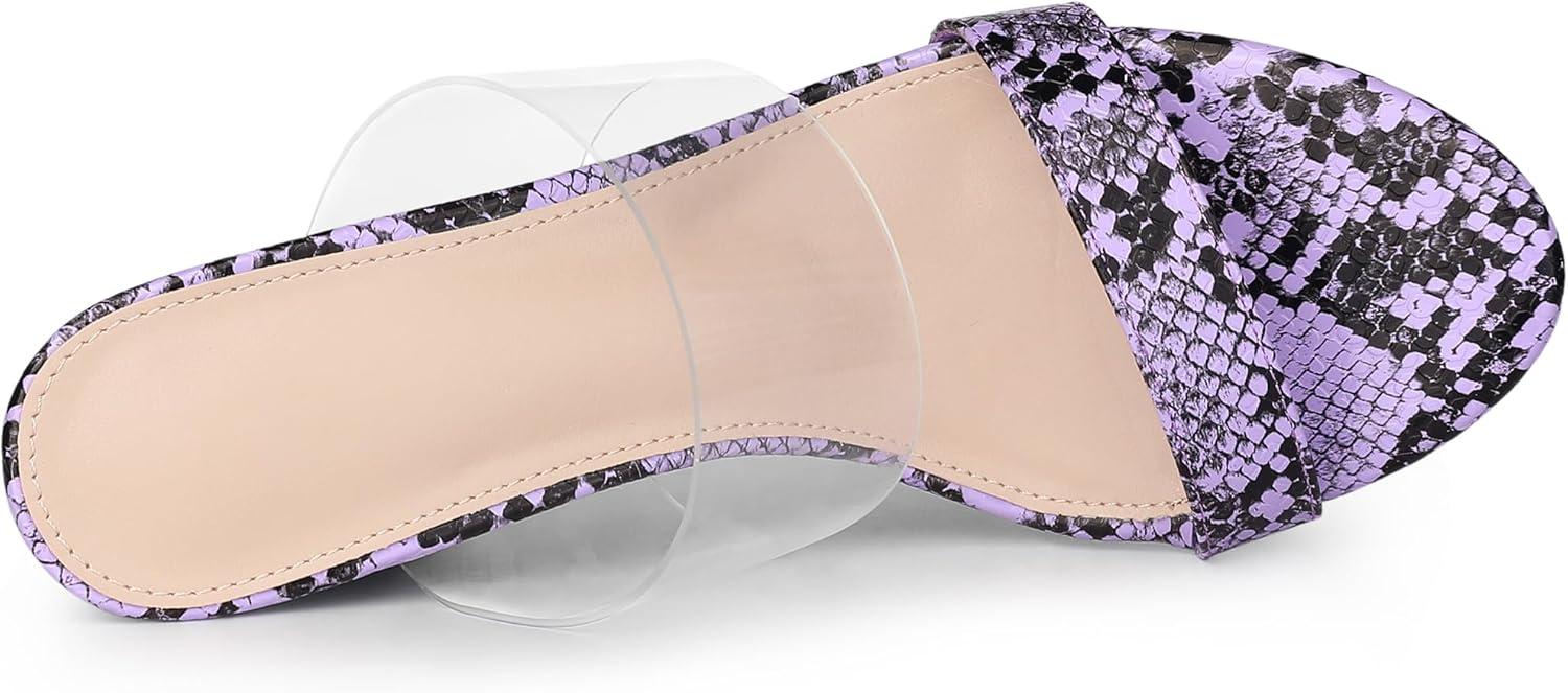 Allegra K Women's Snake Print Block Heel Snakeskin Heels Slide Sandals(Purple)