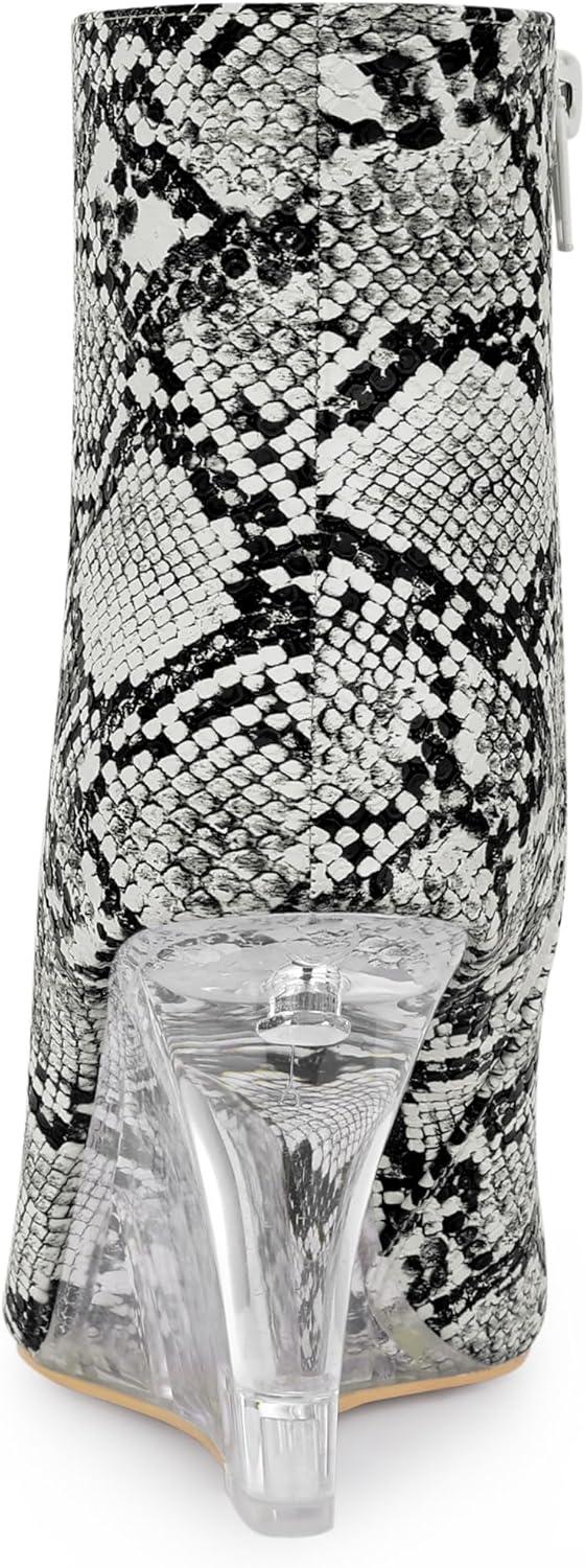 Allegra K Women's Snakeskin Printed Ankle Boots Pointed Toe Wedge Clear Heels Boots(Black White Snake)