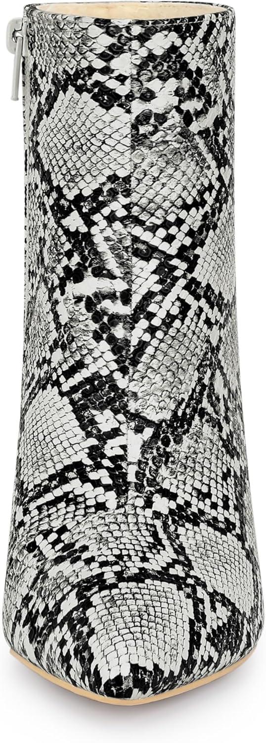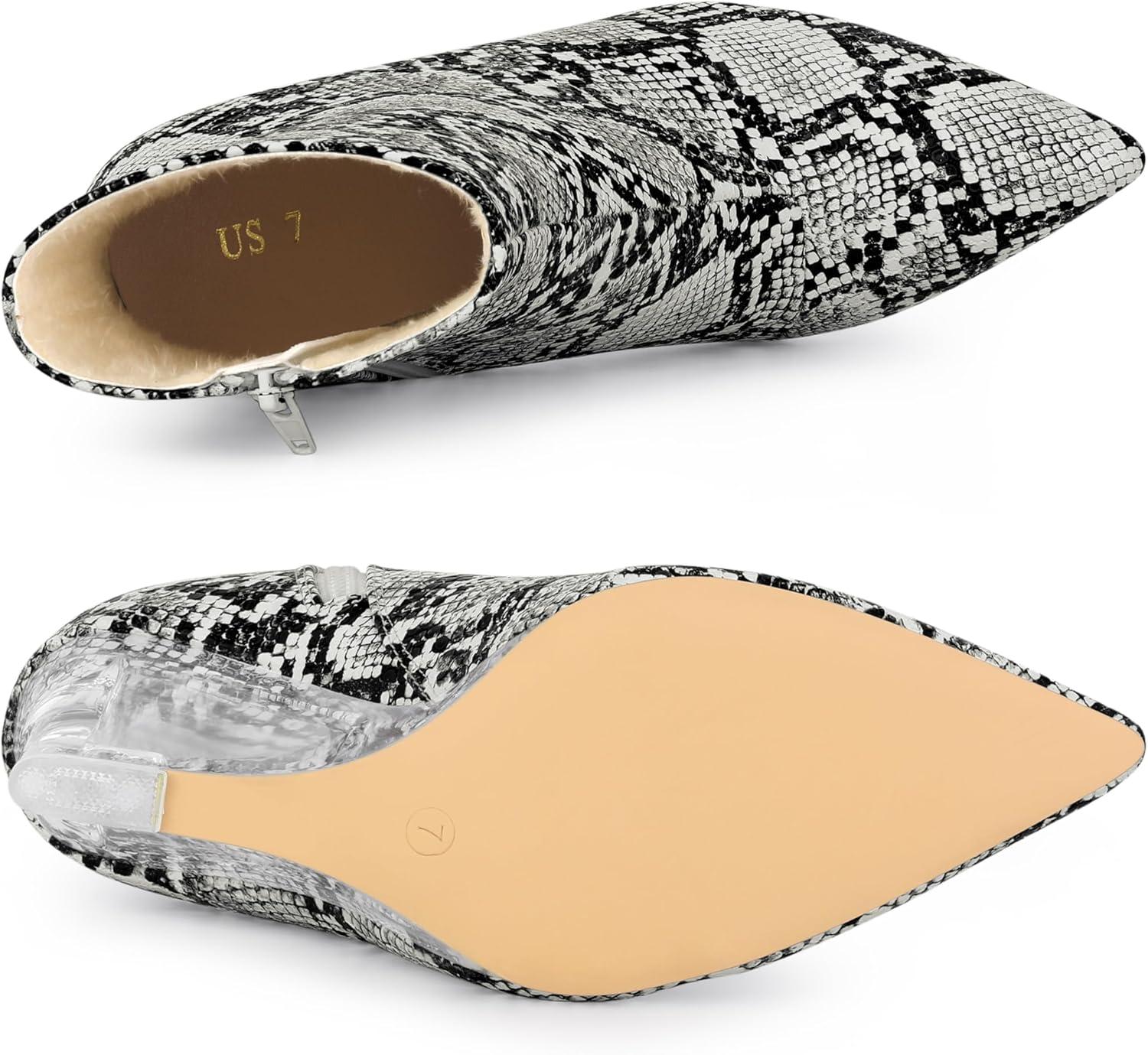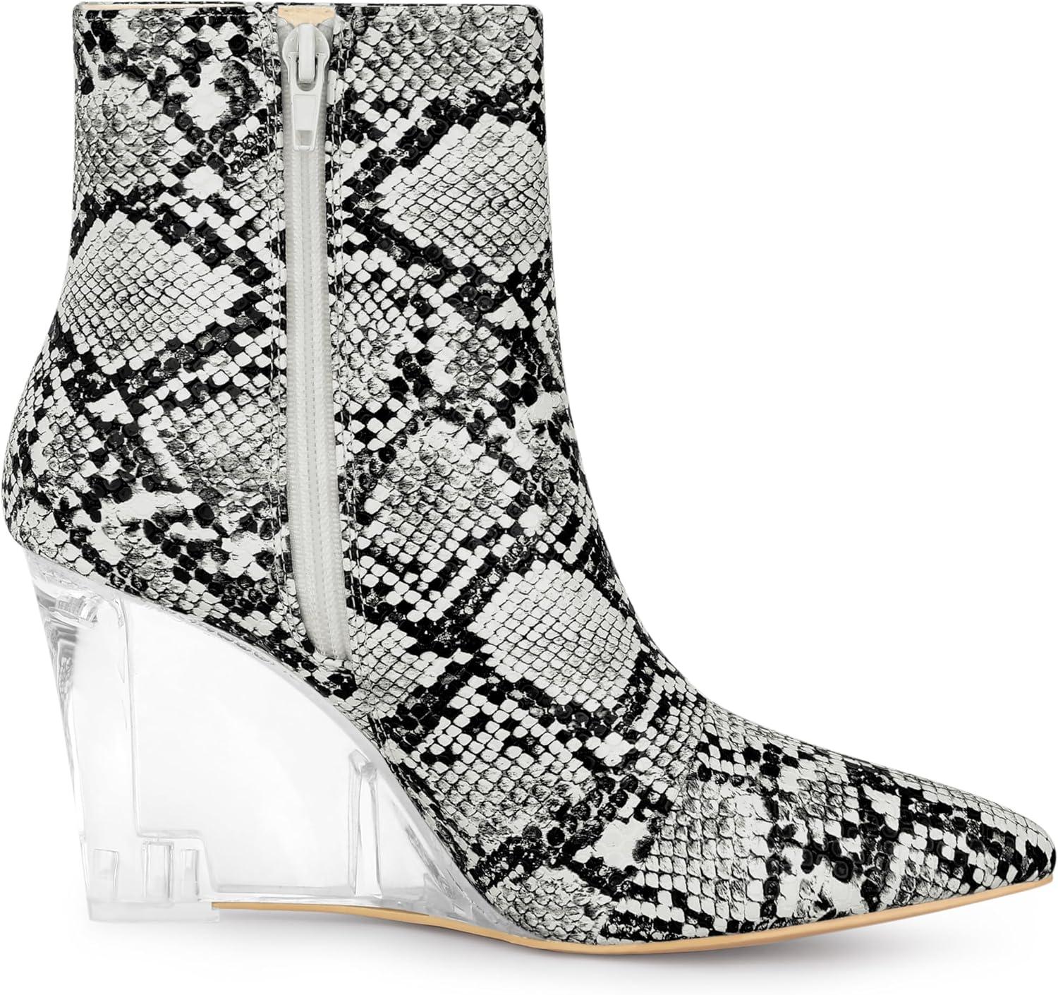 Allegra K Women’s Snakeskin Printed Ankle Boots Pointed Toe Wedge Clear Heels Boots(Black White Snake)